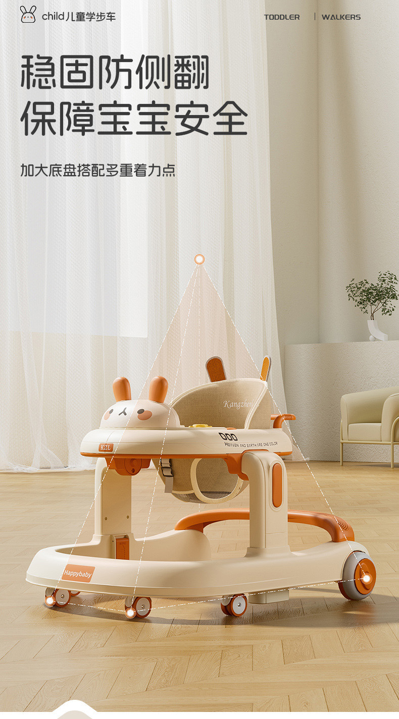 婴儿学步车防型腿防侧翻6-18个月宝宝音乐可坐可推助步学行车
