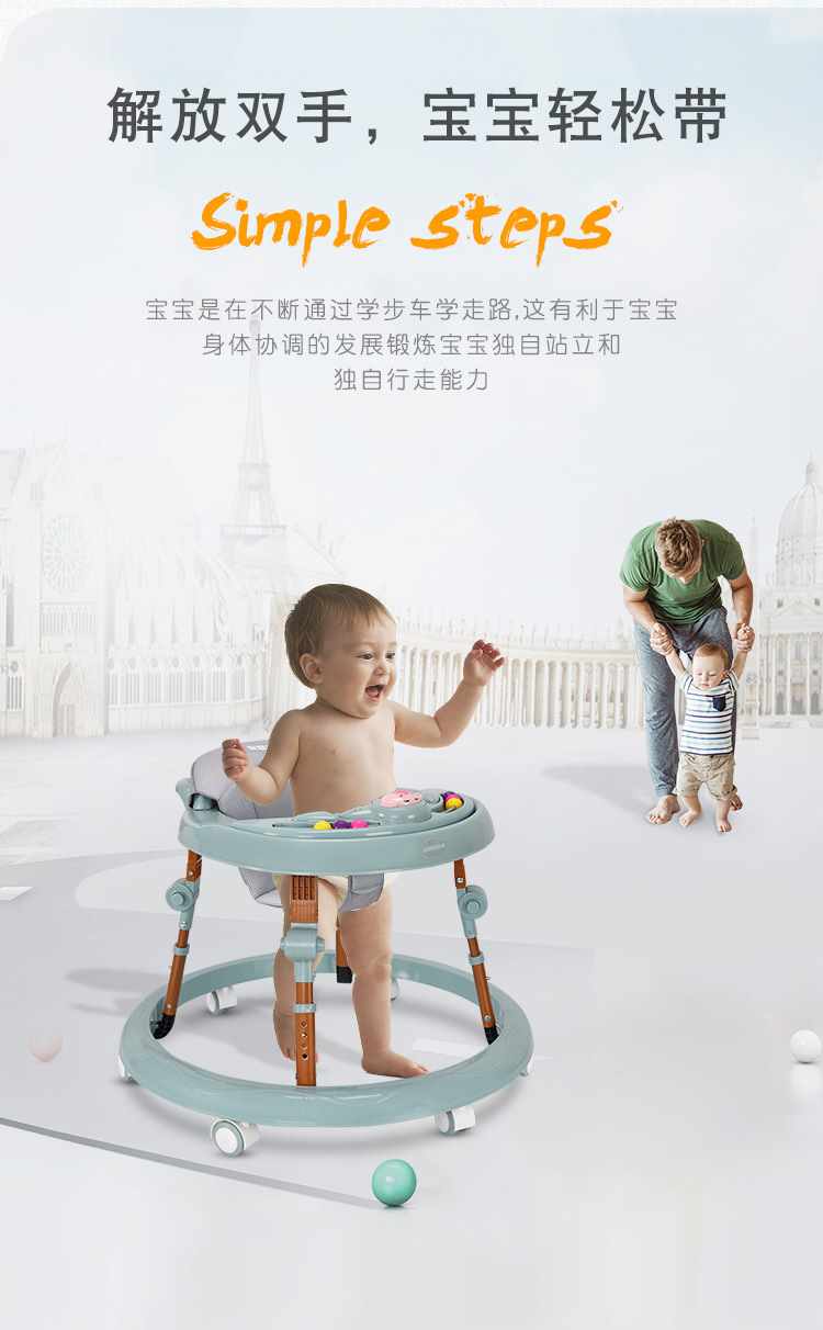 婴儿学步车全围带音乐可折叠男女宝宝学步车 Baby walkers