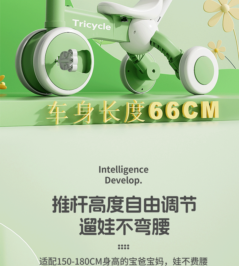 4合1折叠婴儿三轮车儿童自行车带推杆适用于2-4岁和5-7岁3轮婴儿慢跑者 ¥132.00