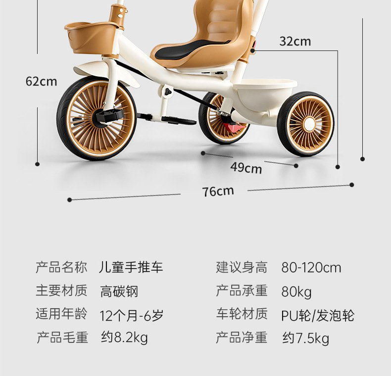 新款儿童三轮车脚踏车1-3-6岁遛娃大号婴儿手推车宝宝自行车