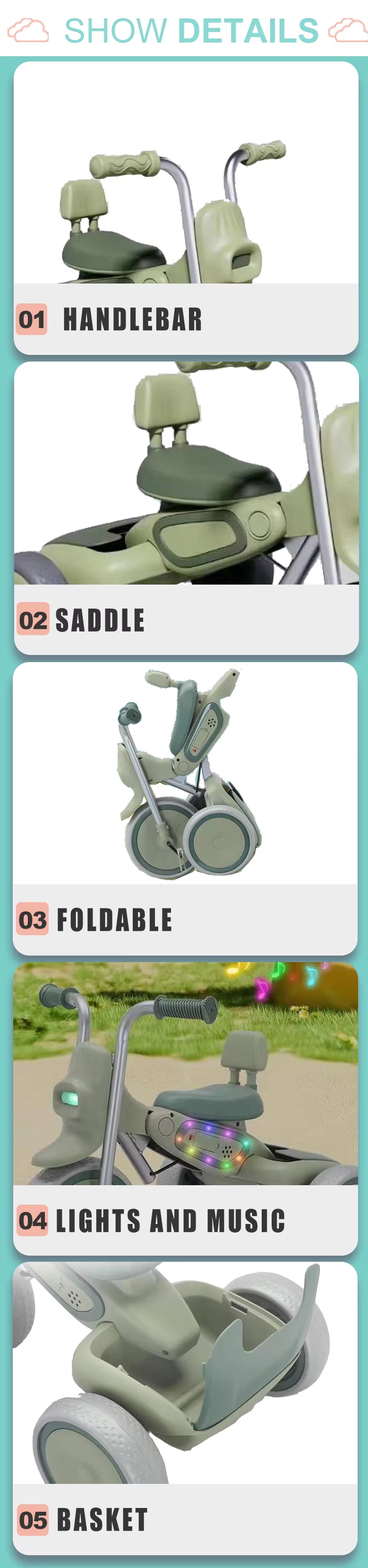 New fashion children's tricycle 1-6 year old children's tricycle music light folding tricycle