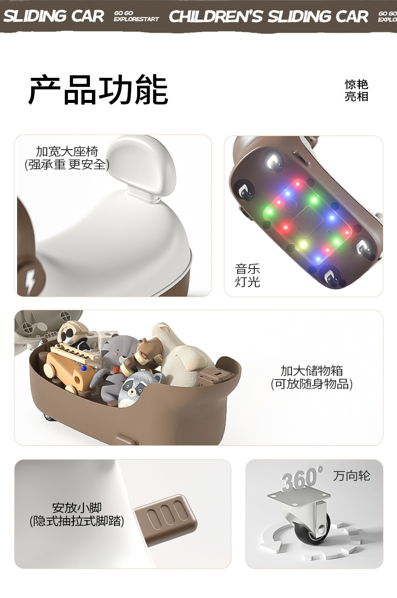 高档新款儿童滑行车四轮平衡车1-3岁男女宝宝滑步车溜溜车带灯光
