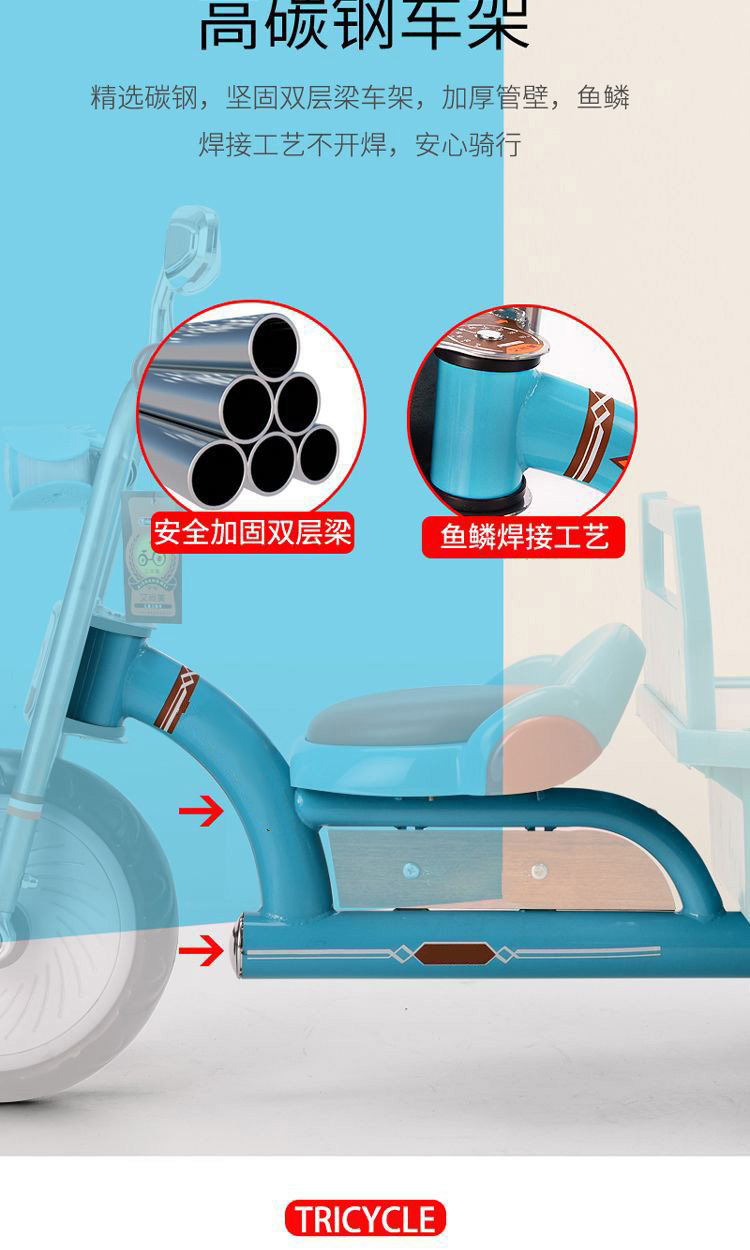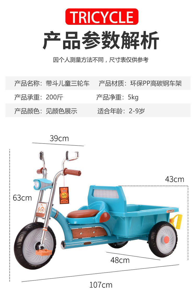 儿童三轮车带后斗大号车厢2-6岁男女宝宝脚踏车怀旧双人童车玩具