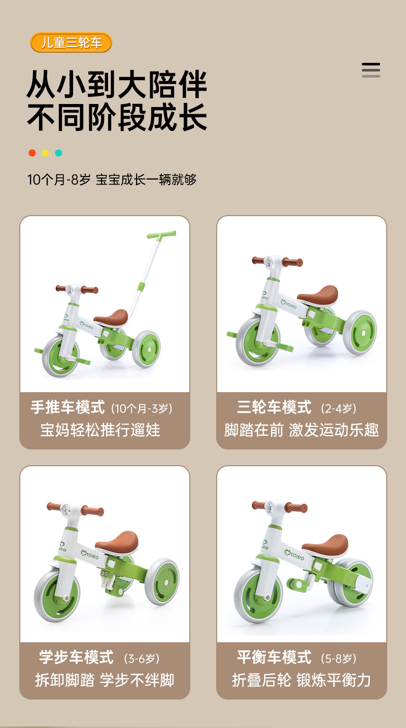 儿童多种功能三轮车1-5岁男女宝宝手推车脚踏车平衡车轻便遛娃神器 ¥168.00