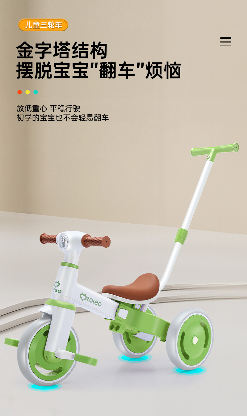 4合1折叠婴儿三轮车儿童自行车带推杆适用于2-4岁和5-7岁3轮婴儿慢跑者 ¥132.00