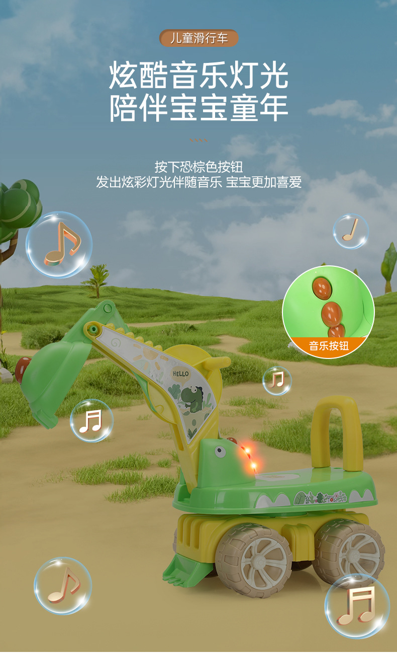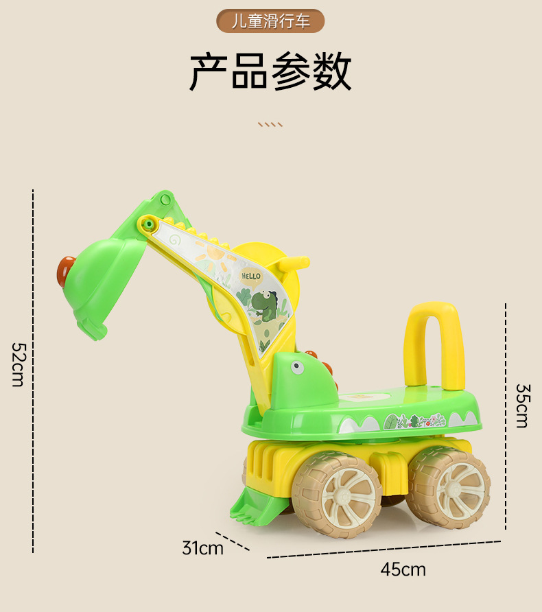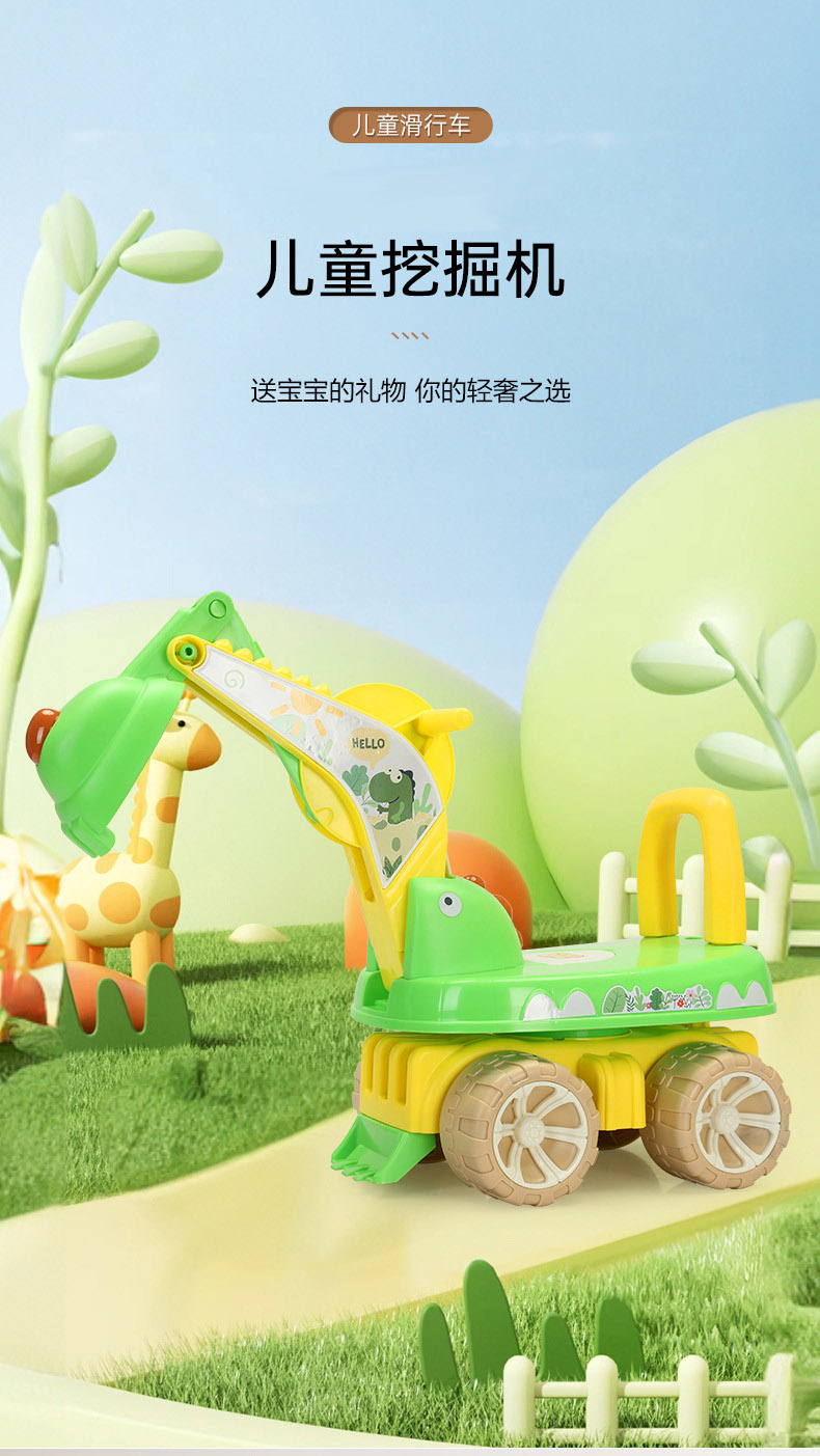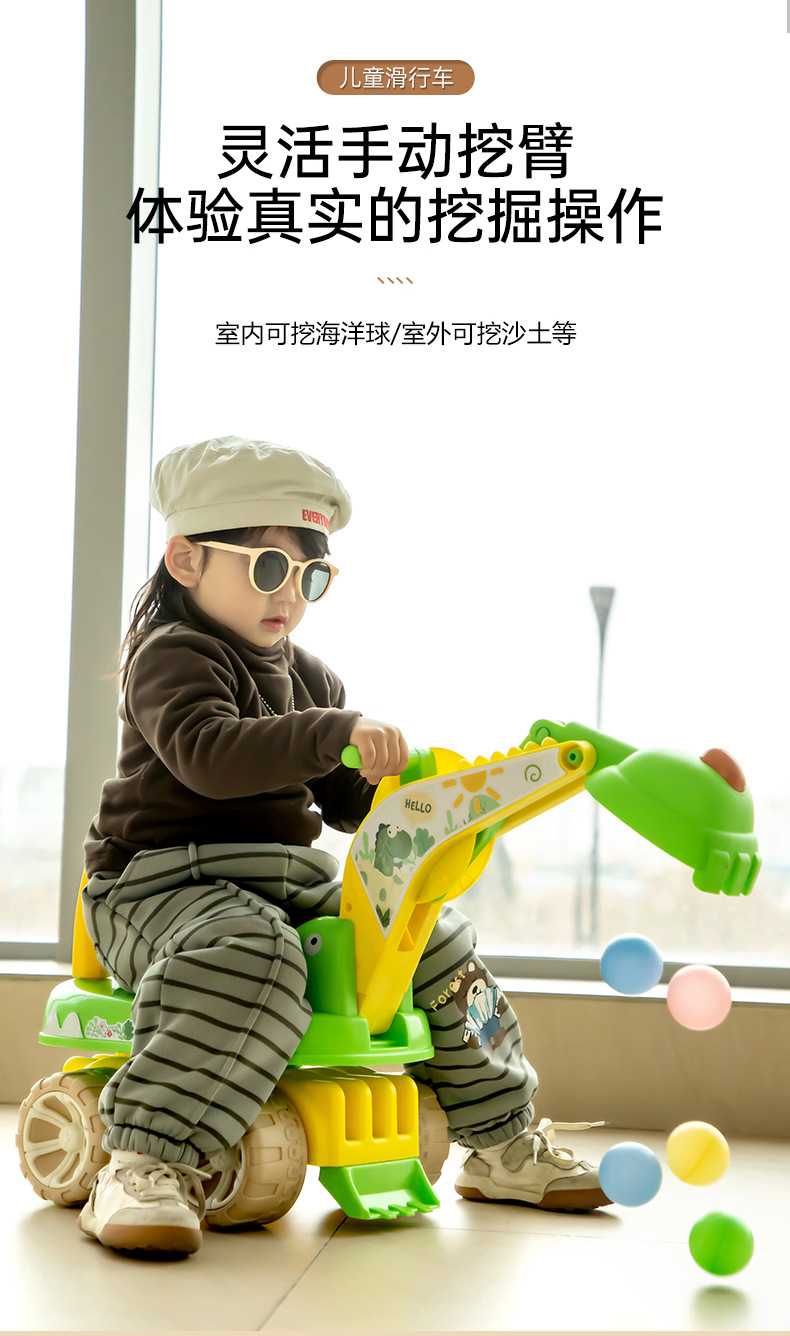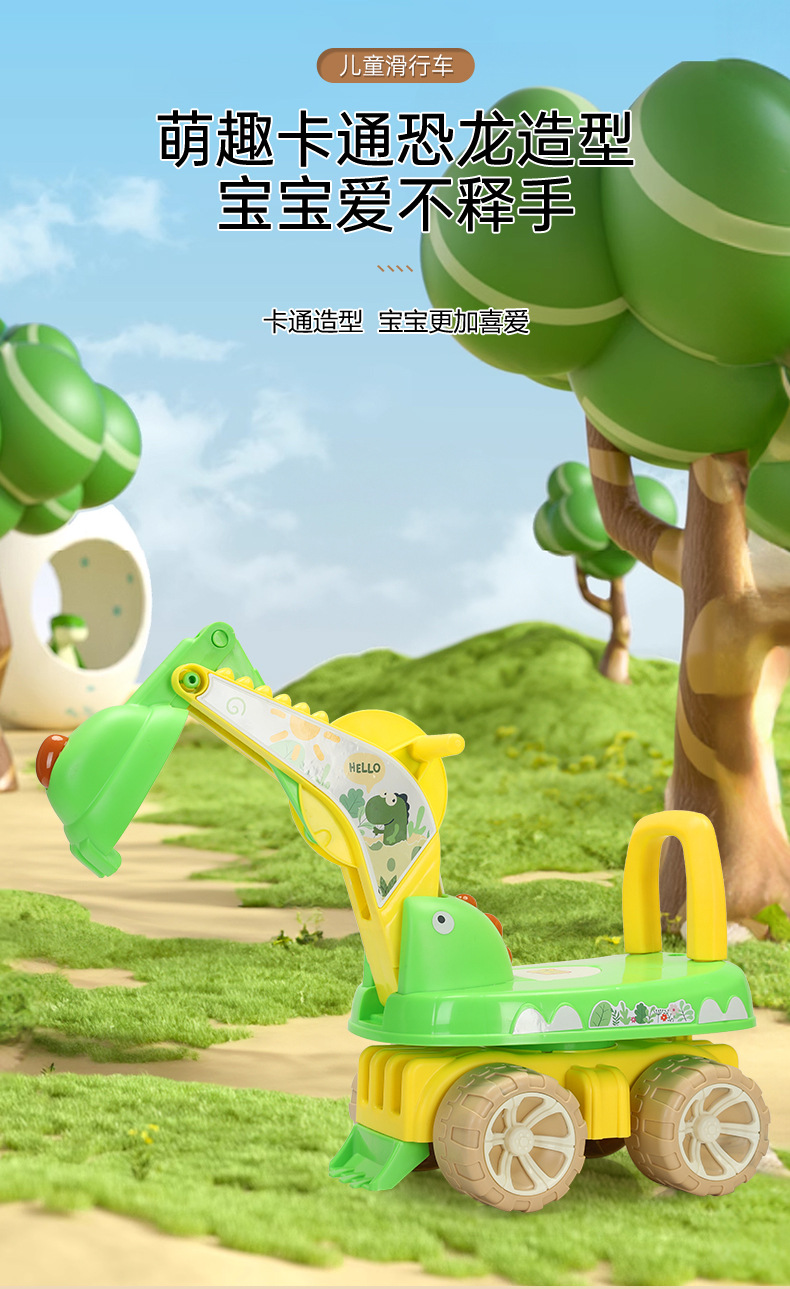 四轮滑行车儿童挖掘机恐龙挖机可360旋转男女宝宝1-3岁工程滑行车
