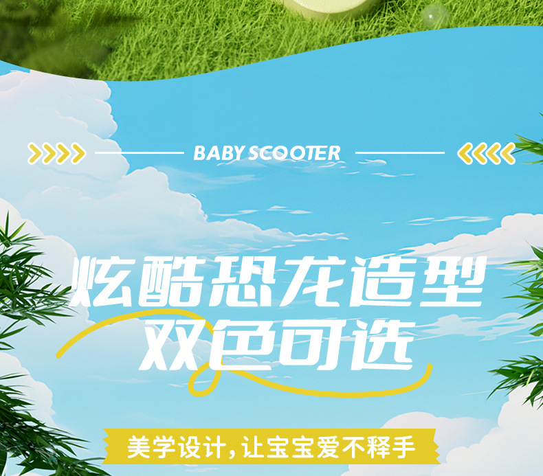 小恐龙绿/黄+音乐灯光+静音轮+内置储物筐