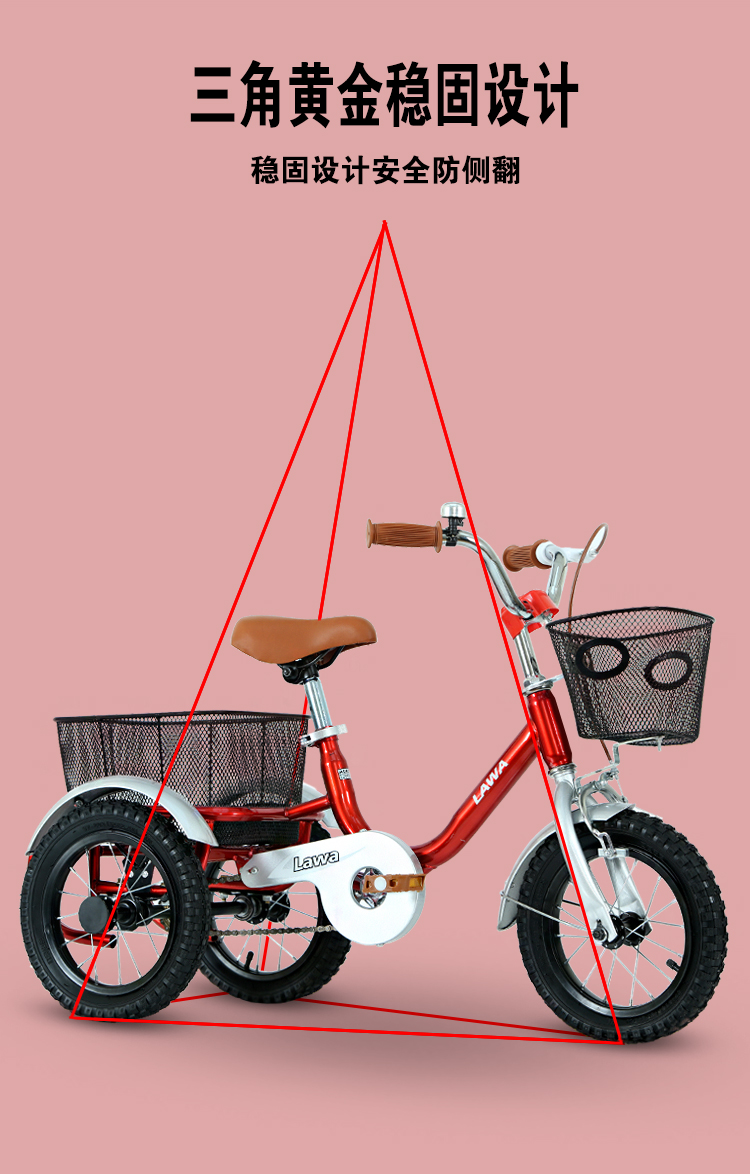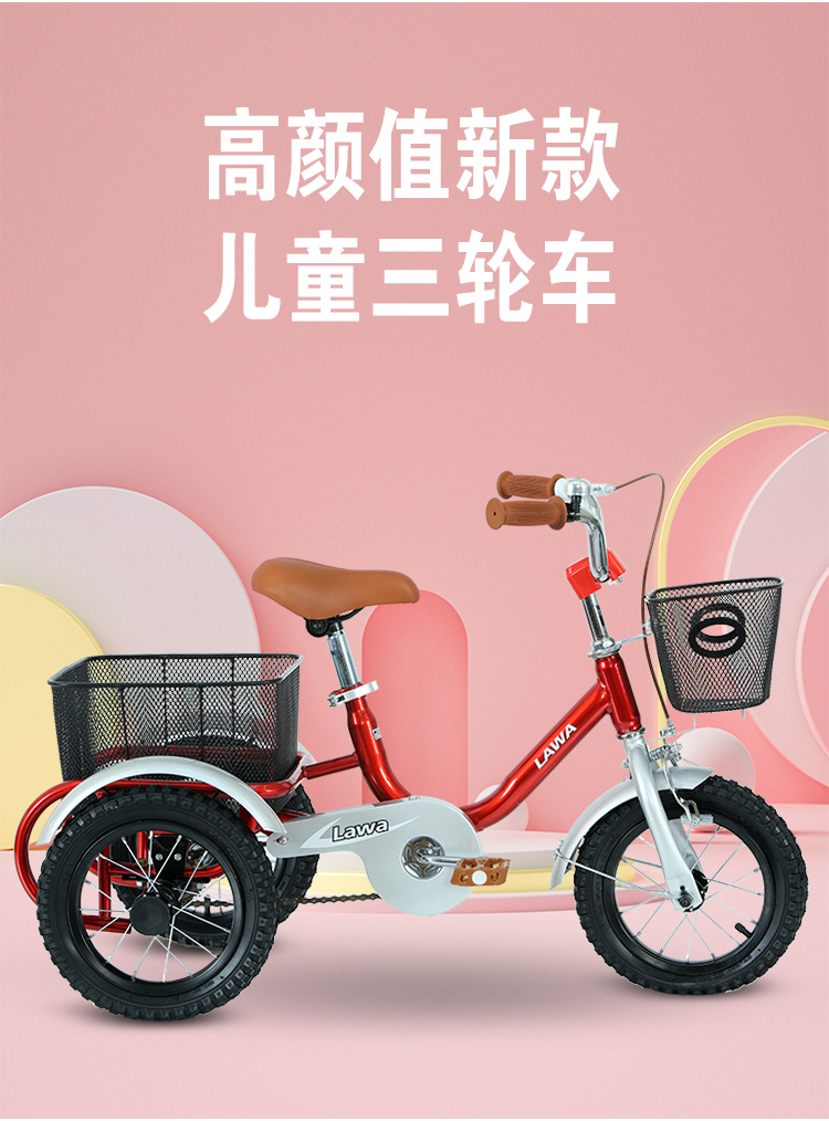 儿童脚踏三轮车防侧翻带后斗前框儿童脚踏三轮自行车带斗三轮车