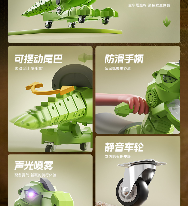 儿童玩具恐龙滑行车 1-5岁男女宝宝灯光音乐溜溜车扭扭车