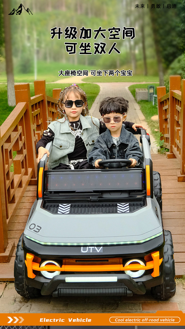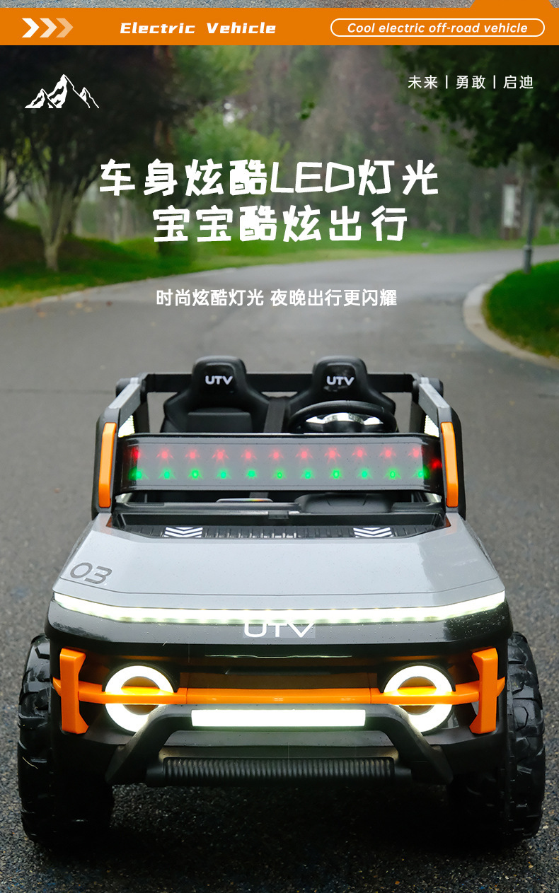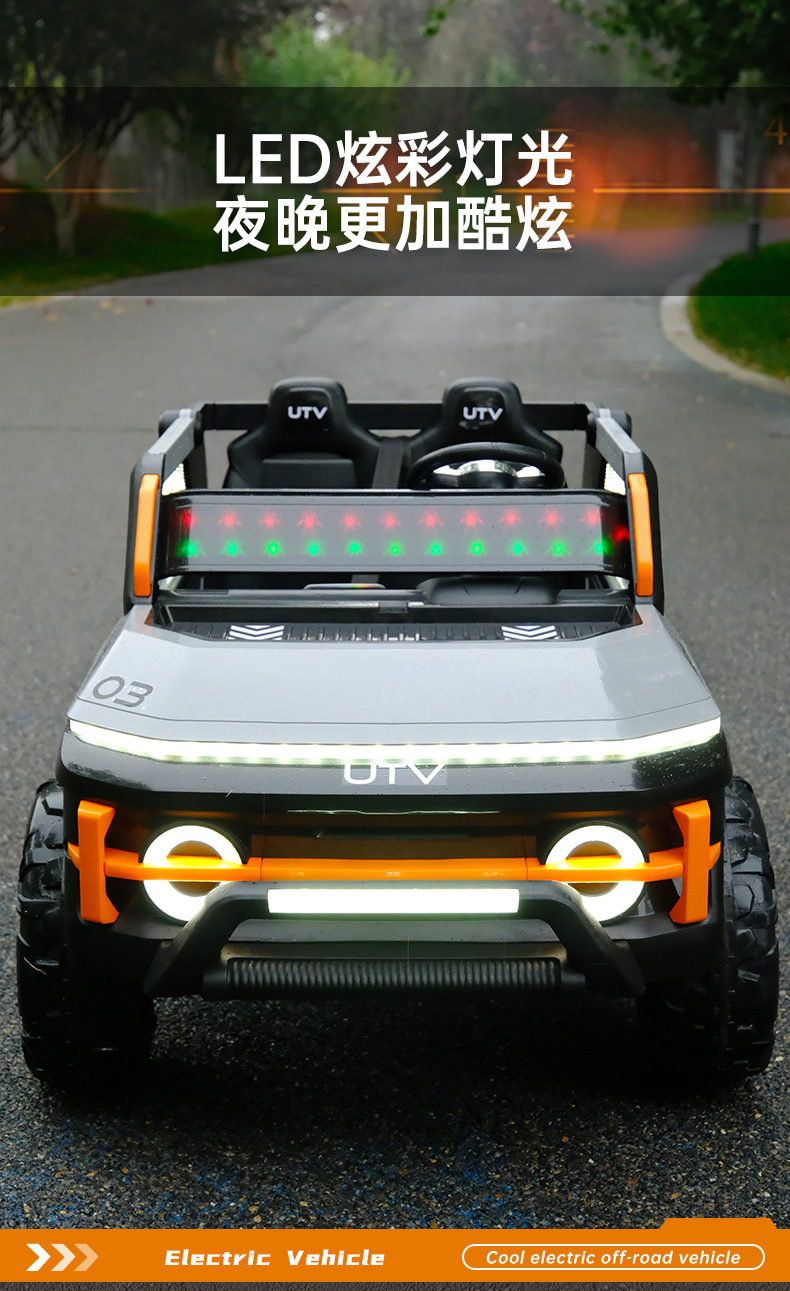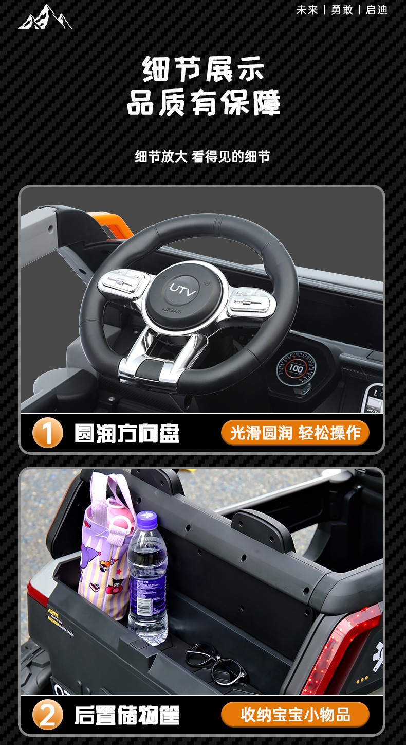 货号:03-TCZD 多种功能音乐版➕2.4G多种功能遥控器,可链接蓝牙,炫酷灯光➕闪灯,双排座椅,左侧式方向盘,超大空间,方向盘一键安装,便携式拉杆,四轮驱动带轴承,四轮真避震+车兜,装甲护底 12V7 电瓶(可做12V10)