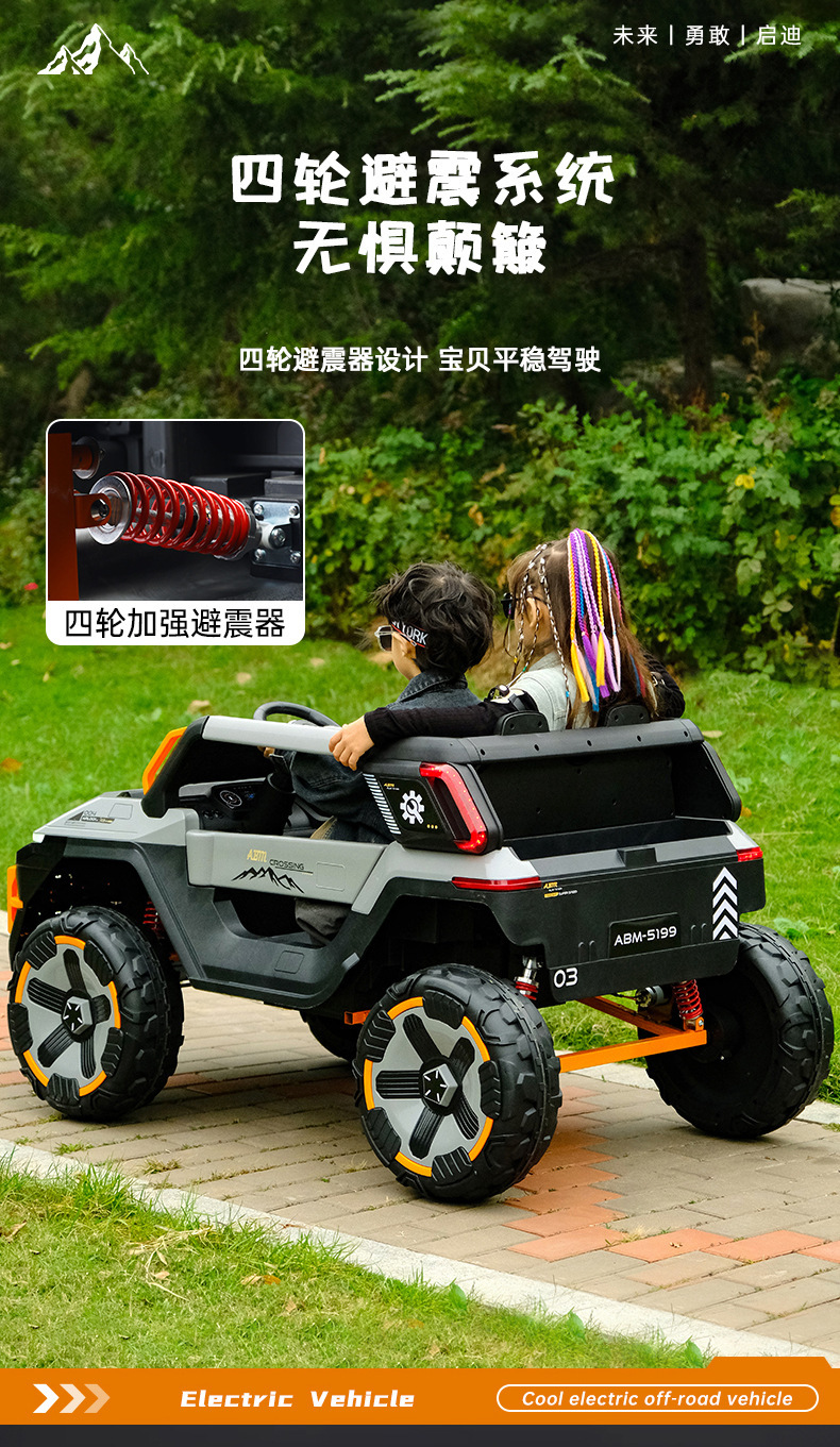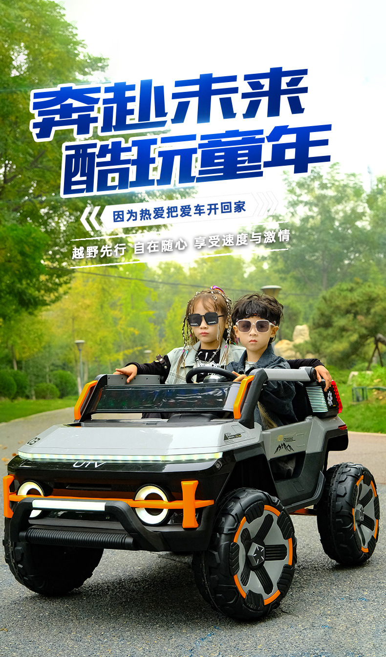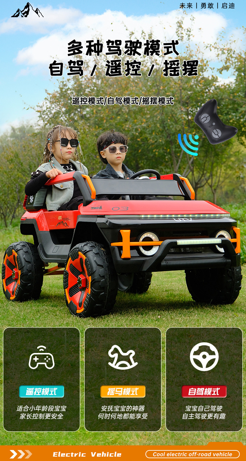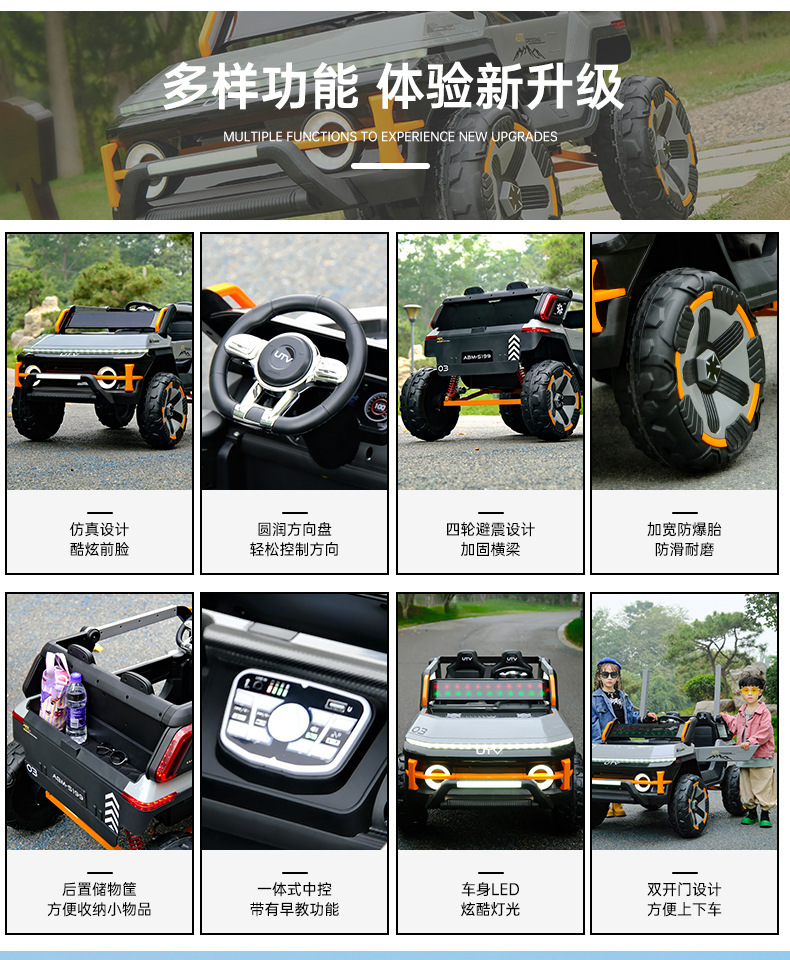 货号:03-TCZD 多种功能音乐版➕2.4G多种功能遥控器,可链接蓝牙,炫酷灯光➕闪灯,双排座椅,左侧式方向盘,超大空间,方向盘一键安装,便携式拉杆,四轮驱动带轴承,四轮真避震+车兜,装甲护底 12V7 电瓶(可做12V10)
