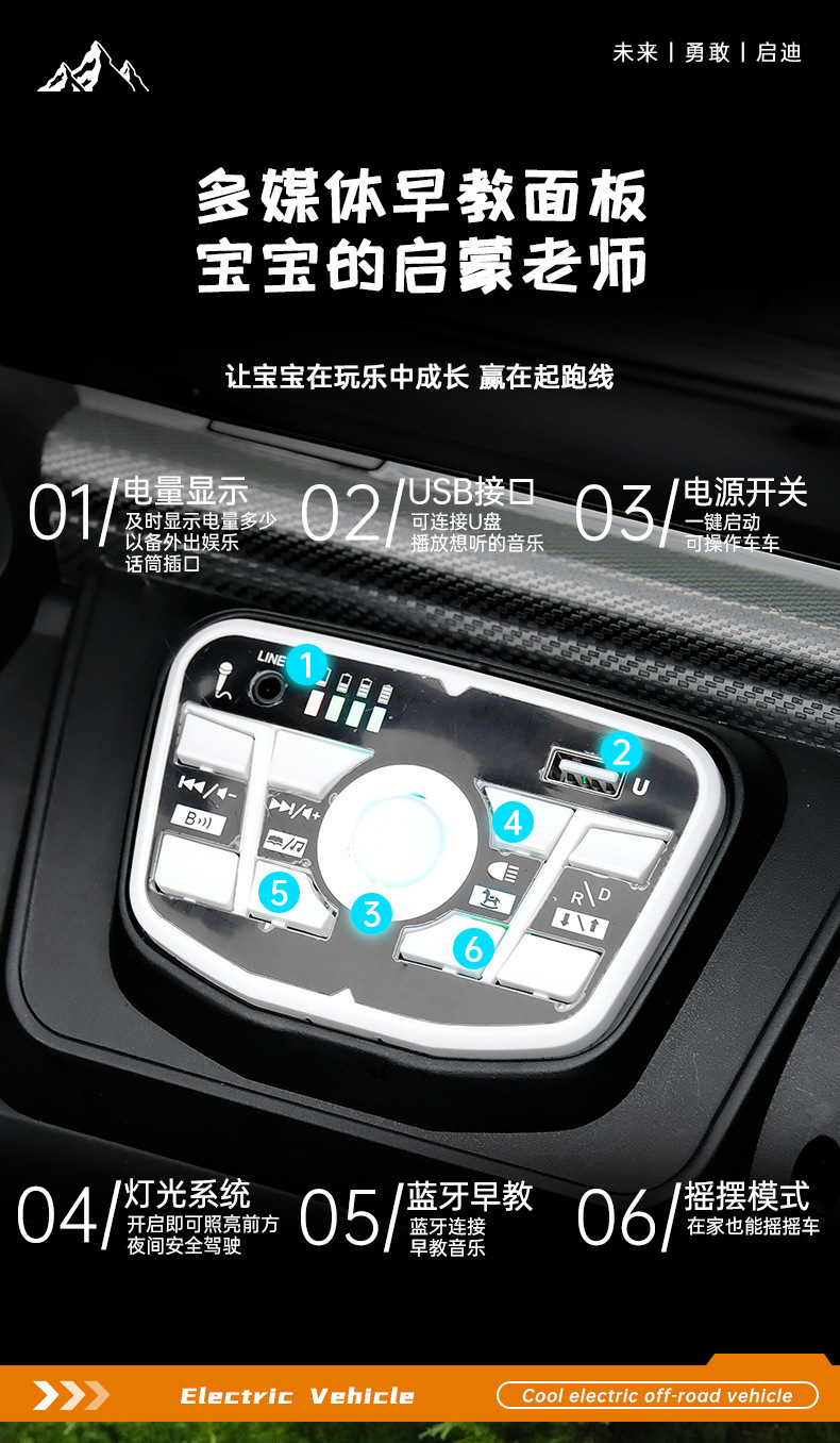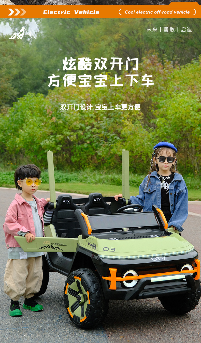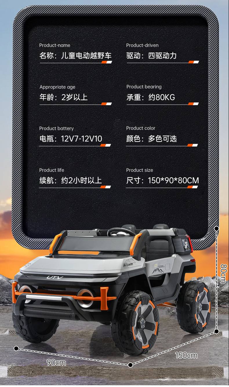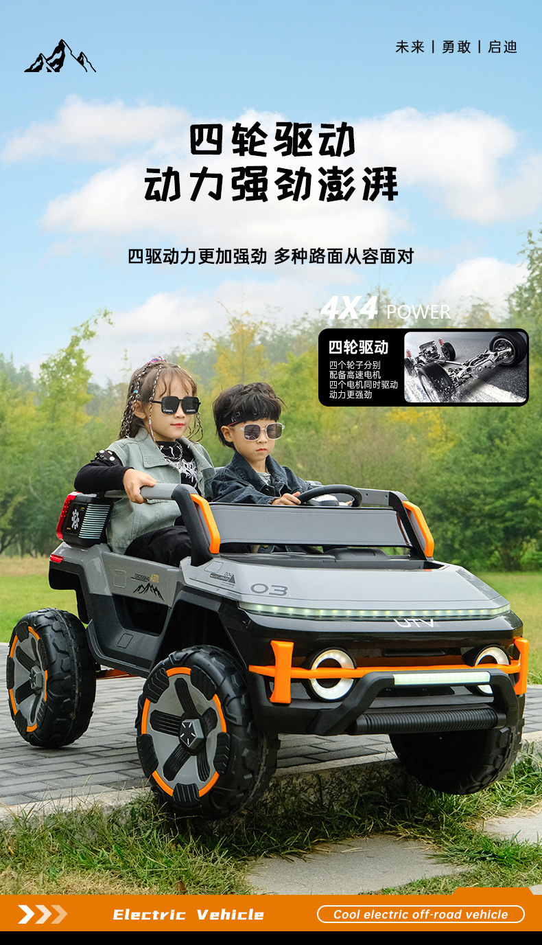 货号:03-TCZD 多种功能音乐版➕2.4G多种功能遥控器,可链接蓝牙,炫酷灯光➕闪灯,双排座椅,左侧式方向盘,超大空间,方向盘一键安装,便携式拉杆,四轮驱动带轴承,四轮真避震+车兜,装甲护底 12V7 电瓶(可做12V10)