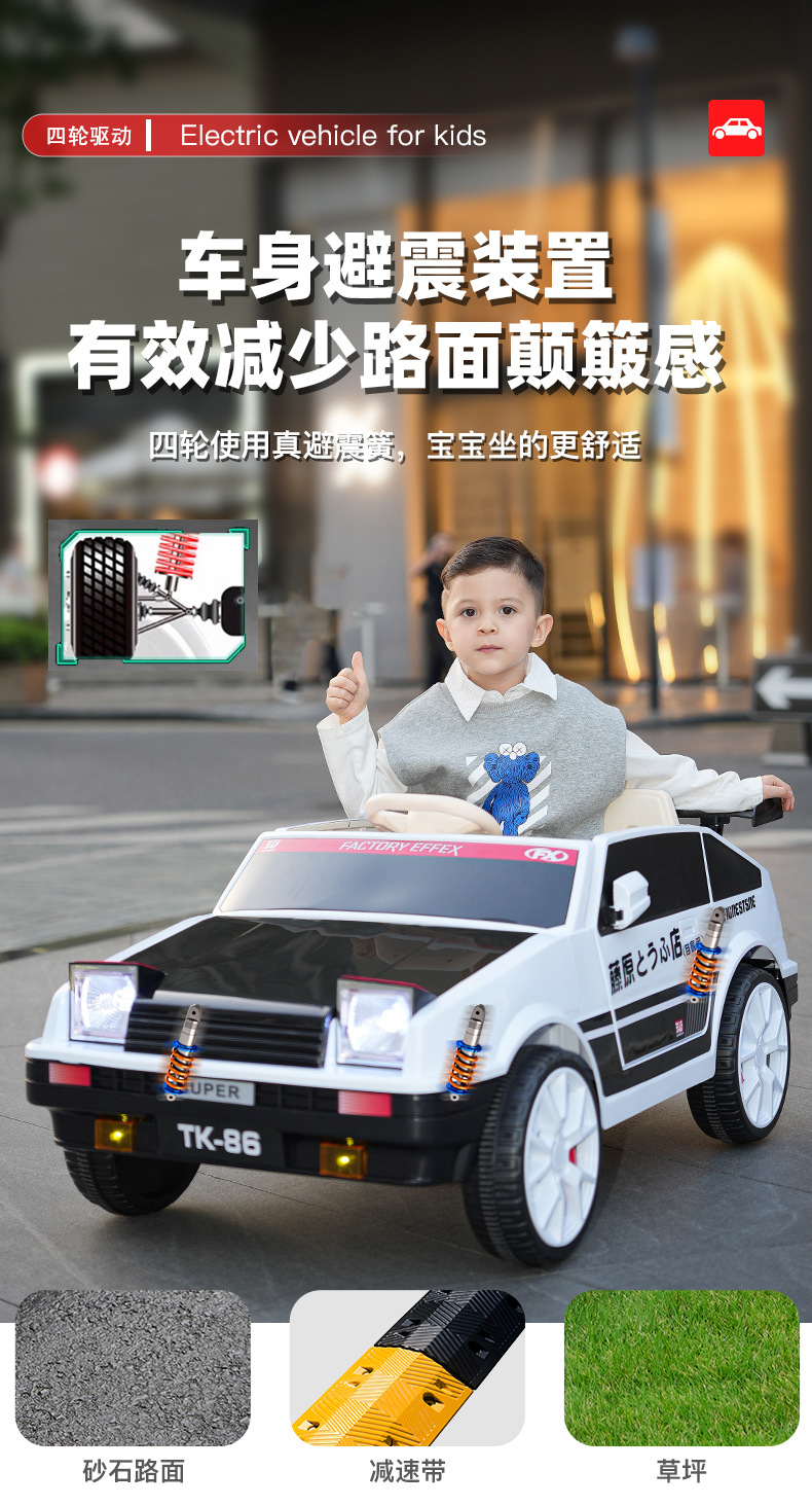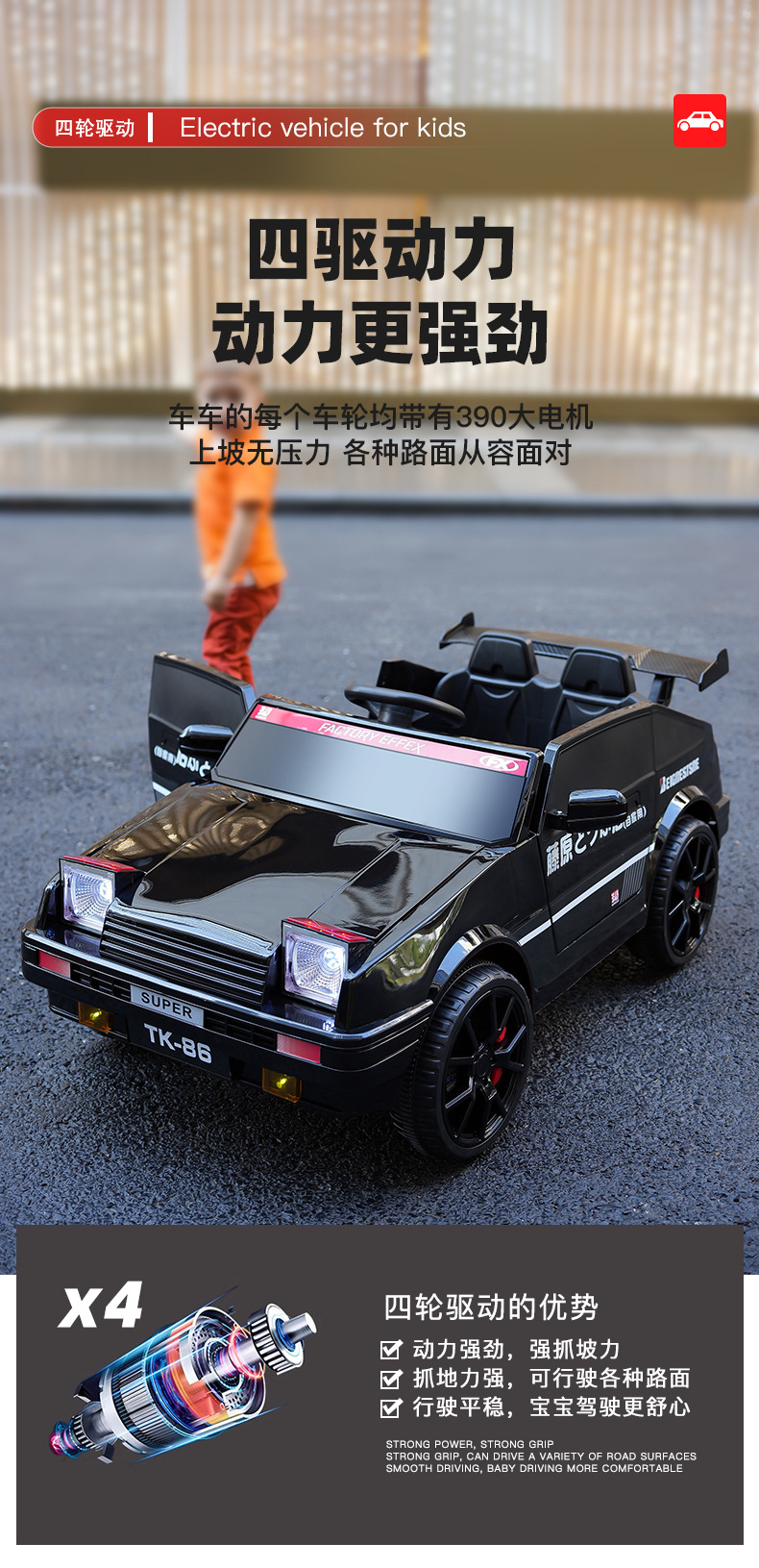 儿童电动车可坐人充电四轮遥控汽车可载人宝宝电动四驱86玩具车