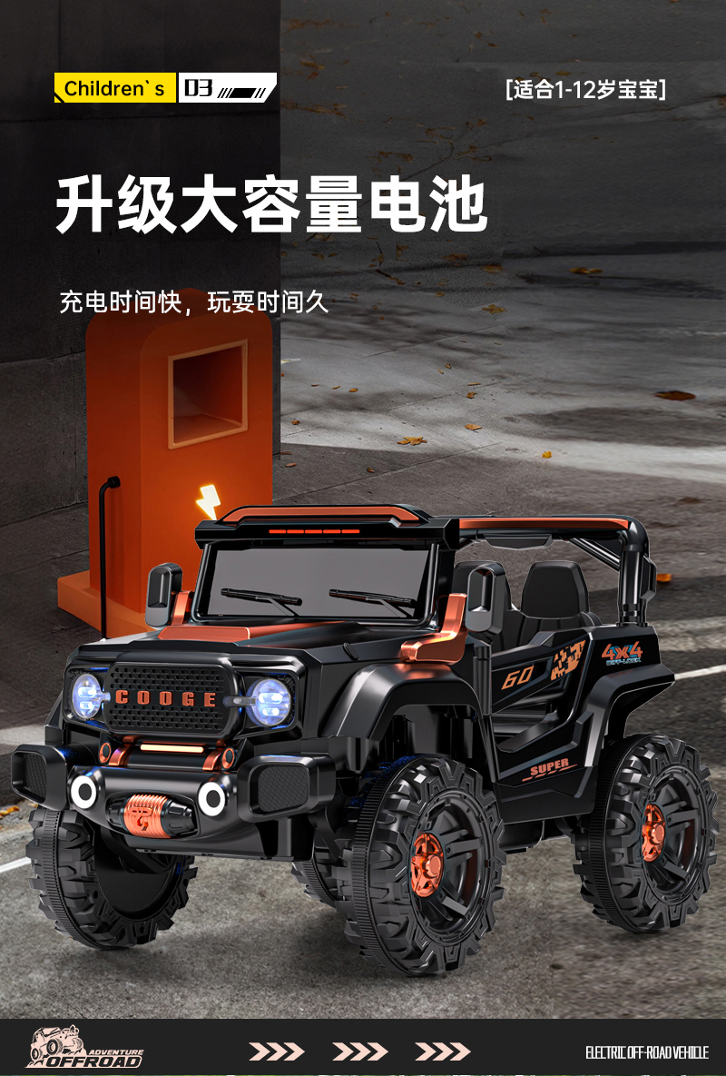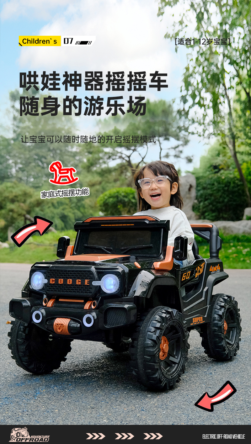 儿童电动车小孩四轮越野车四驱遥控玩具汽车可坐大人宝宝摇摆童车 ¥562.00