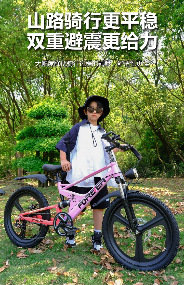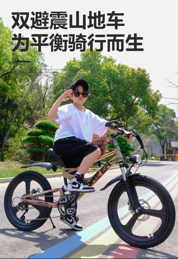 儿童自行车男女孩7-8-9-15岁中大童双减震碟刹变速山地自行车
