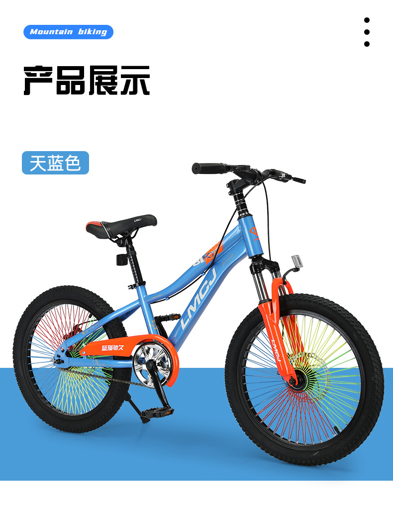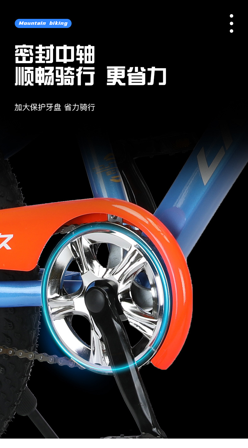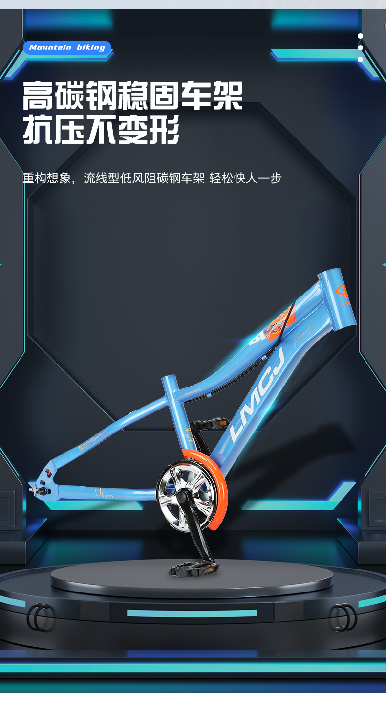 推进模式:链条载重量:80公斤(kg)材质:碳钢车用途:山地车车架结构:整体车制动系统:双碟刹车架类型:无尾车架前叉类型:减震前叉刹车类型:前后碟刹年龄:5-14岁