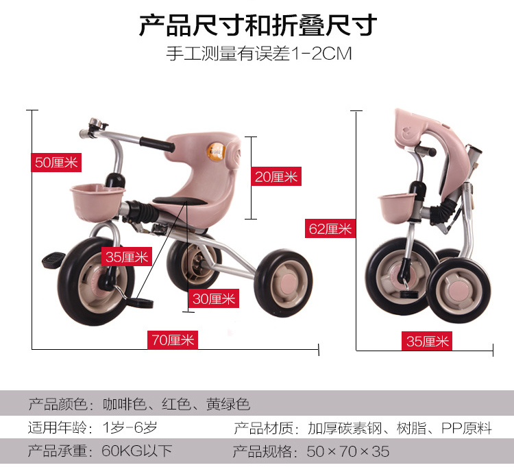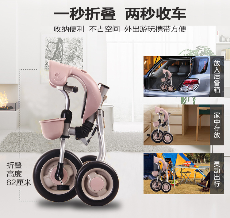 免安装可折叠儿童三轮脚踏车-3岁宝宝自行车童车折叠三轮车