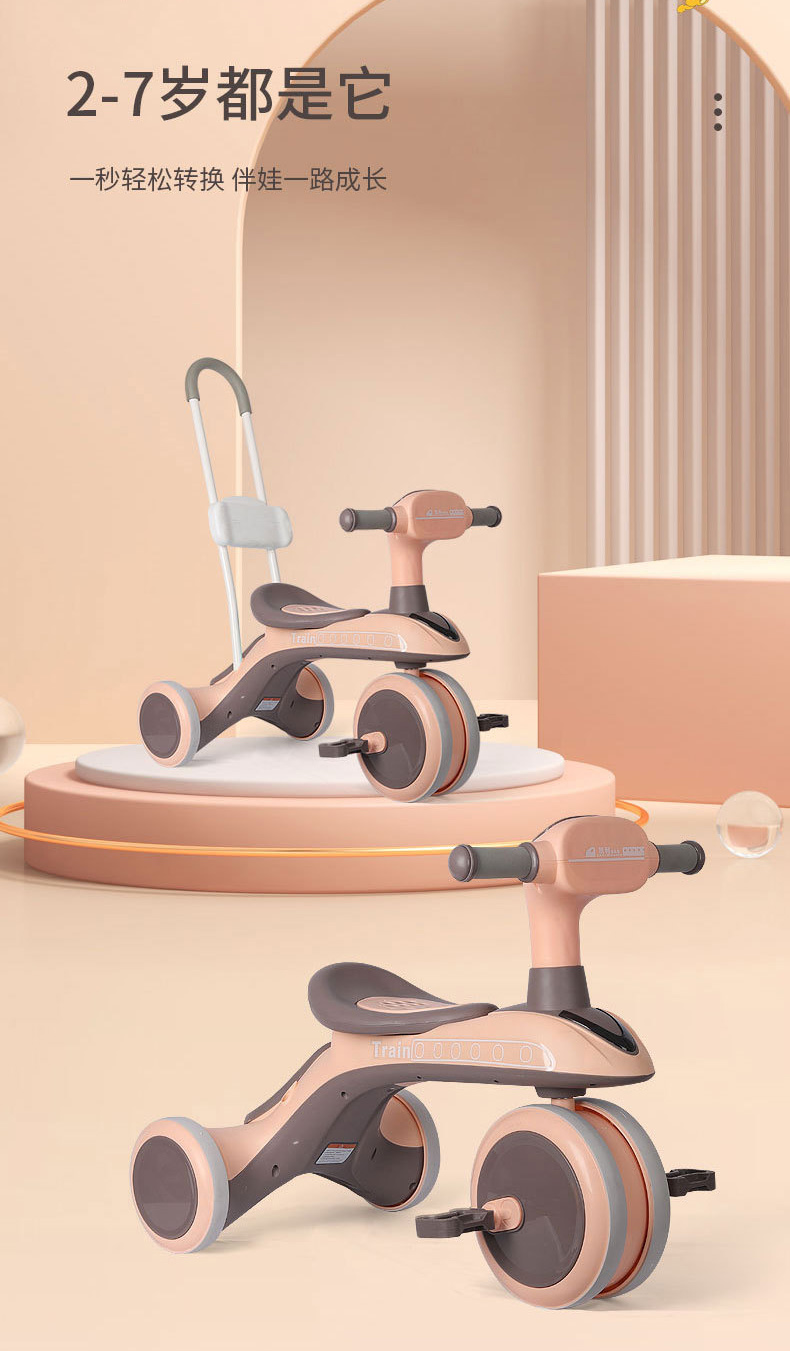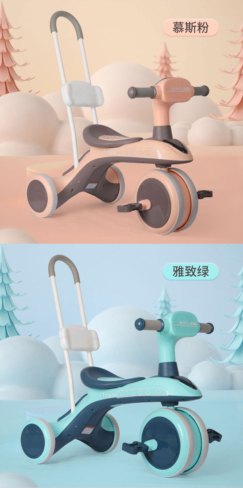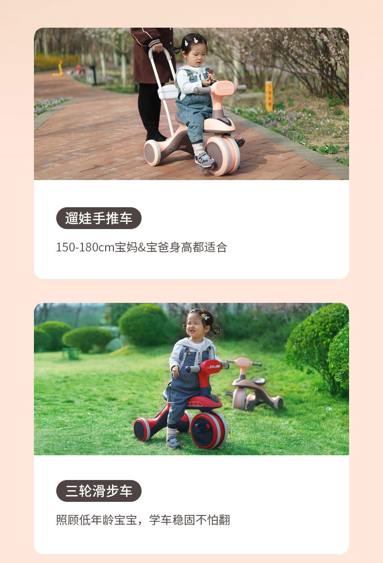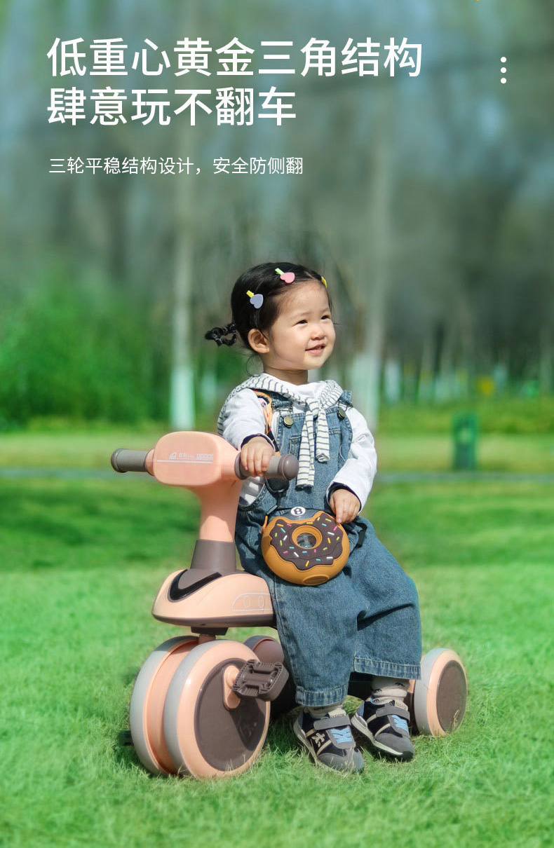 儿童三轮脚踏车骑滑推一体多种功能三轮车音乐灯光滑滑车宝宝手推车