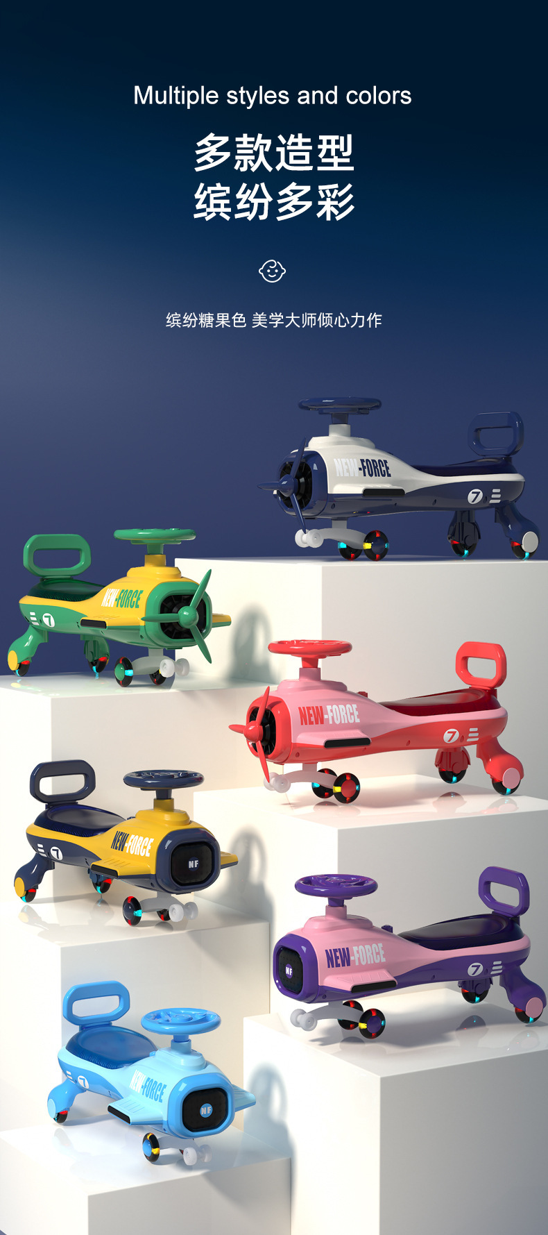 蓝色/黄色/紫色/红色/浅蓝/绿色/咖色/抹茶色/冰淇淋粉+灯光音乐+静音闪光轮