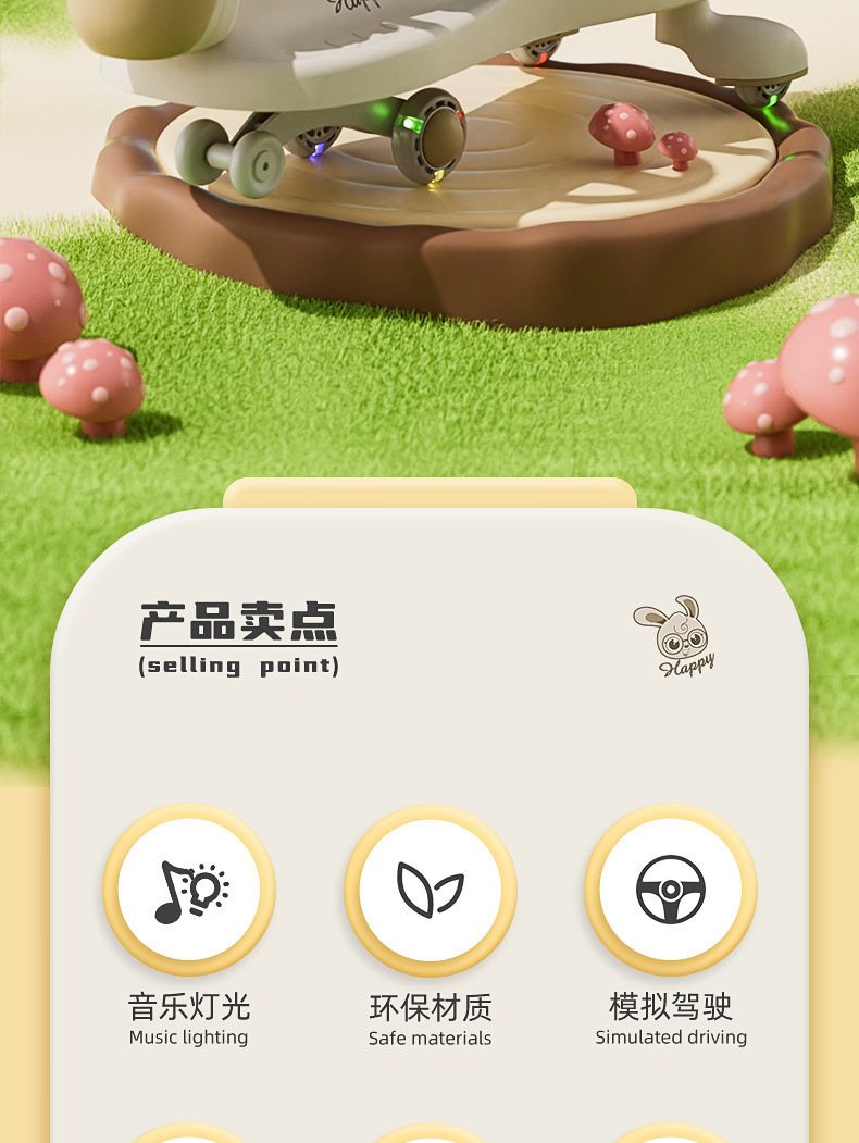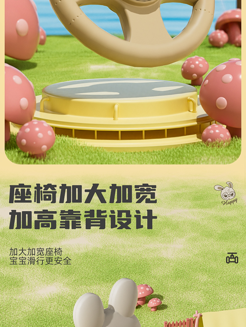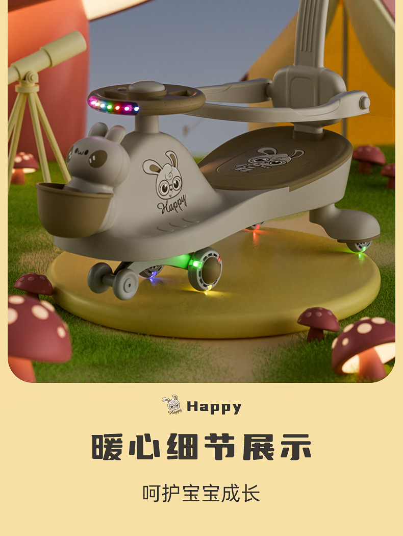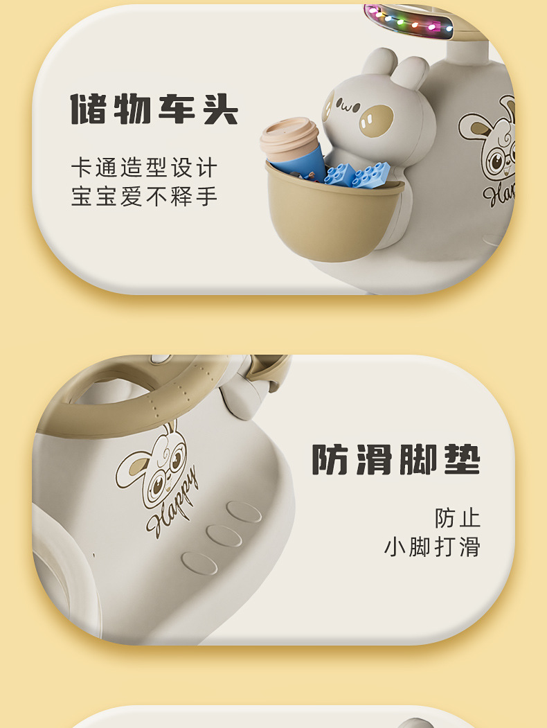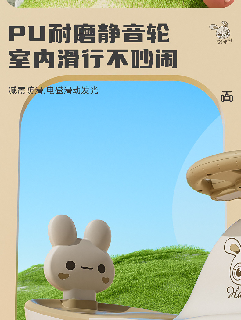 小兔款天青蓝,小兔款玫瑰粉,小兔款卡其色,小兔款牛油绿。推把,静音轮