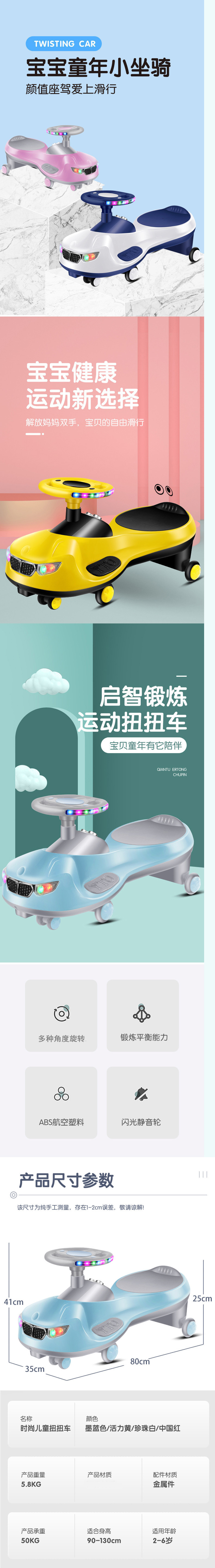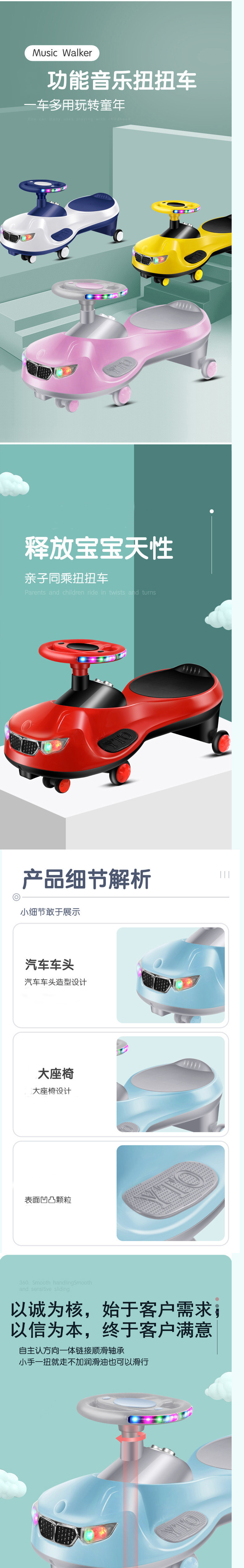 现货供应 音乐扭扭车 儿童滑行溜溜车 摇摆车承重200斤汽车摇摆车
