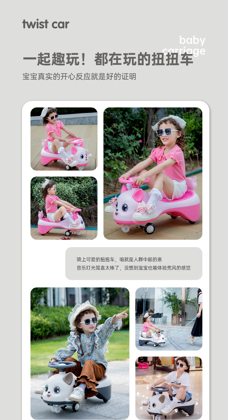 儿童骑秋千婴儿扭转车 带音乐和灯光Pu闪光轮婴儿扭转车摇摆车滑动玩具