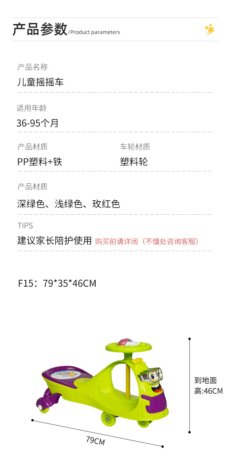 小黄人带音乐儿童扭扭车男女宝宝健身摇摆溜溜滑行车儿童摇摆车