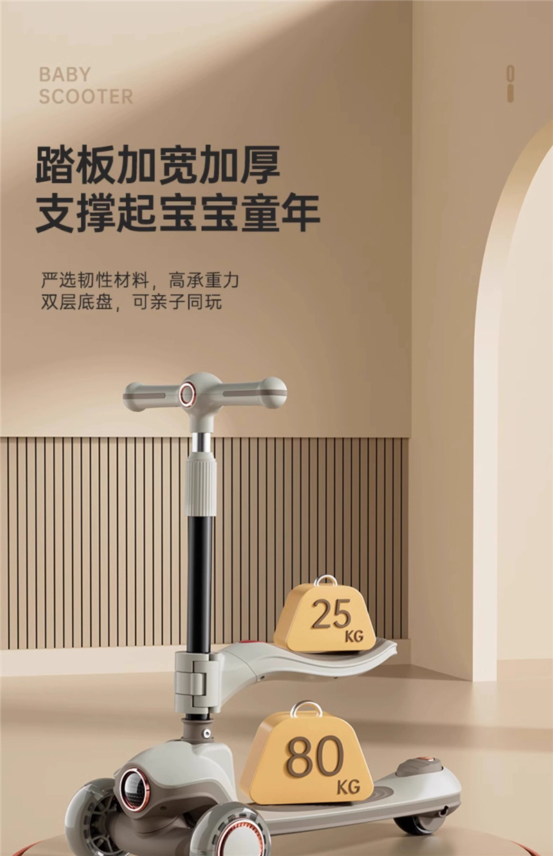 滑板车儿童三合一米高车小孩溜溜车三轮滑滑车踏板车可坐
