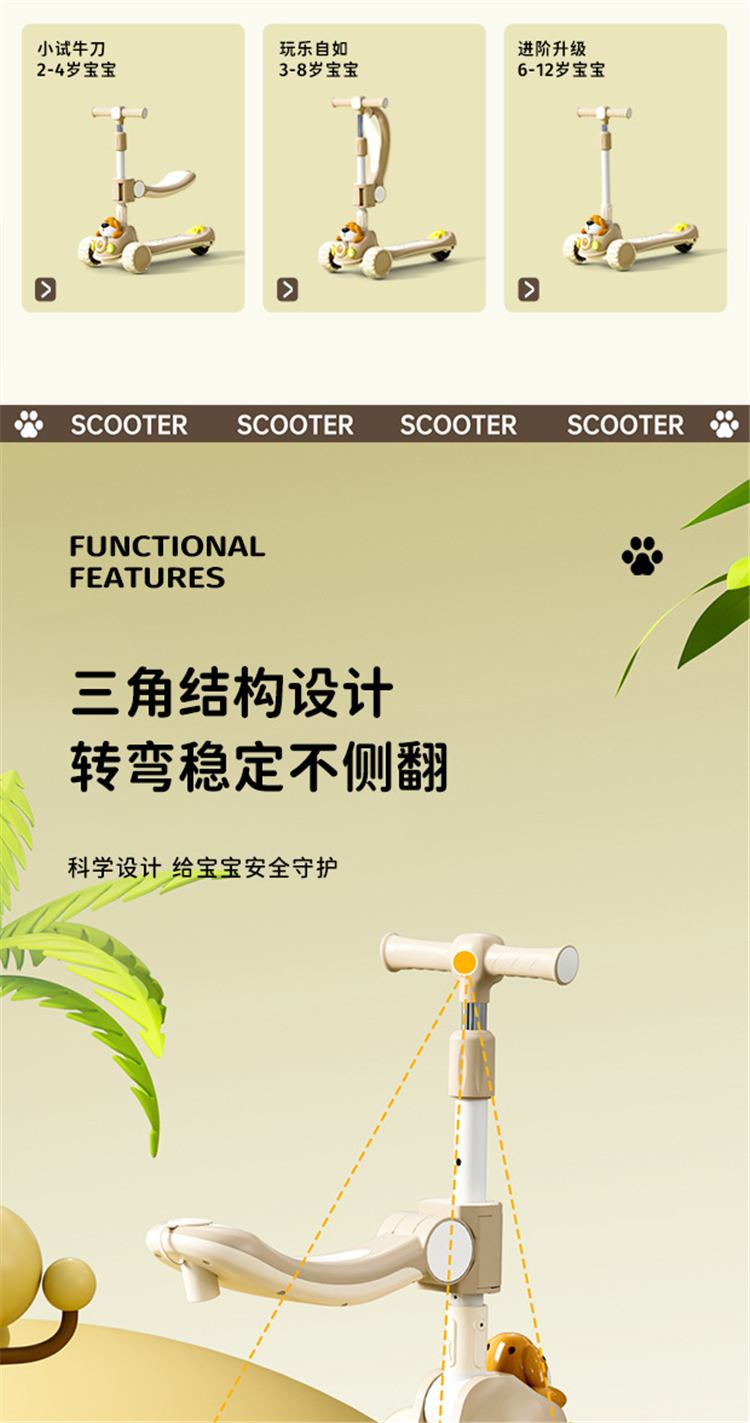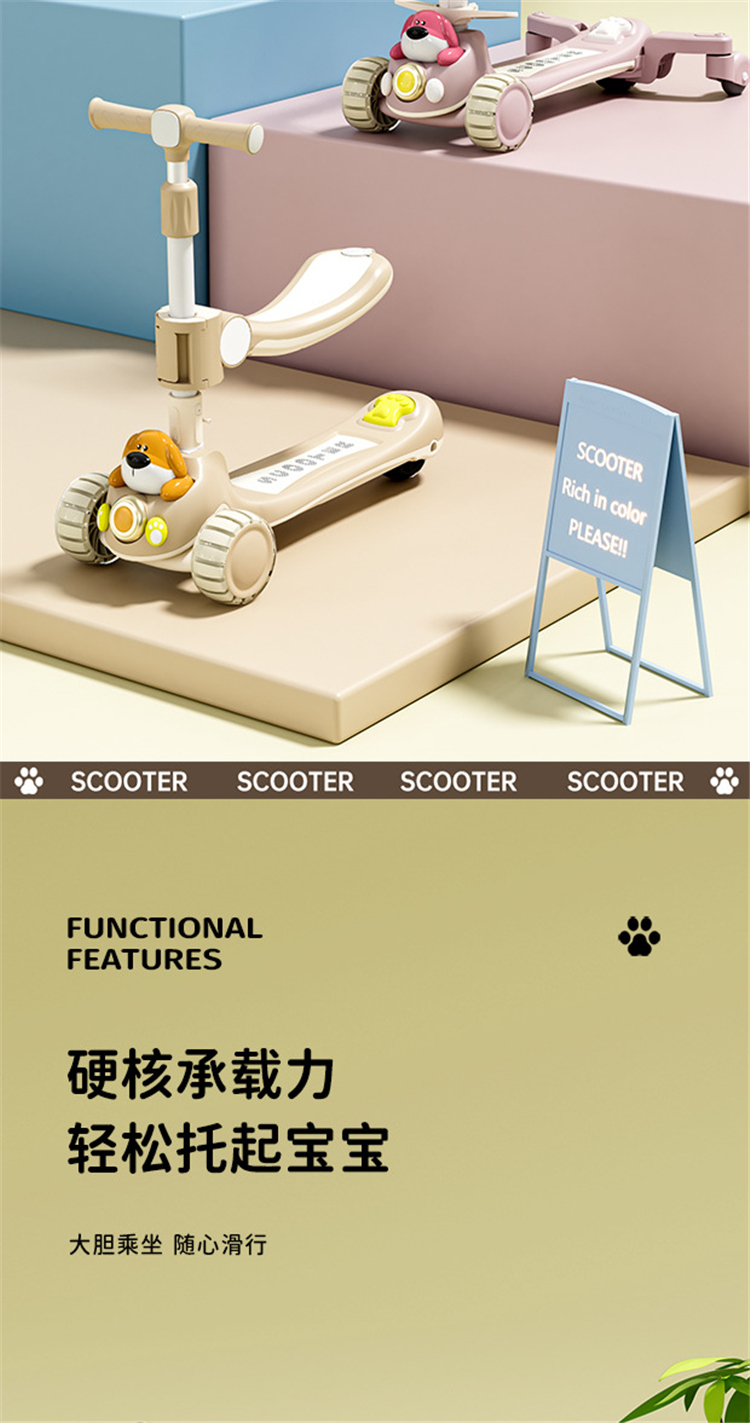 新款儿童滑板车1-3-6-10岁男女宝宝踏板滑行车溜溜车二合一滑板车