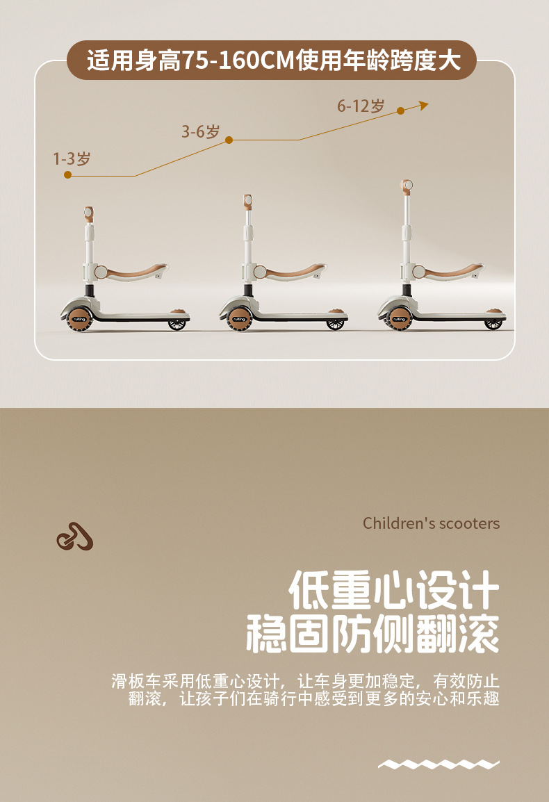 儿童滑板车1-3-6-14岁小孩宝宝踏板滑滑车米高车三合一防侧翻可坐