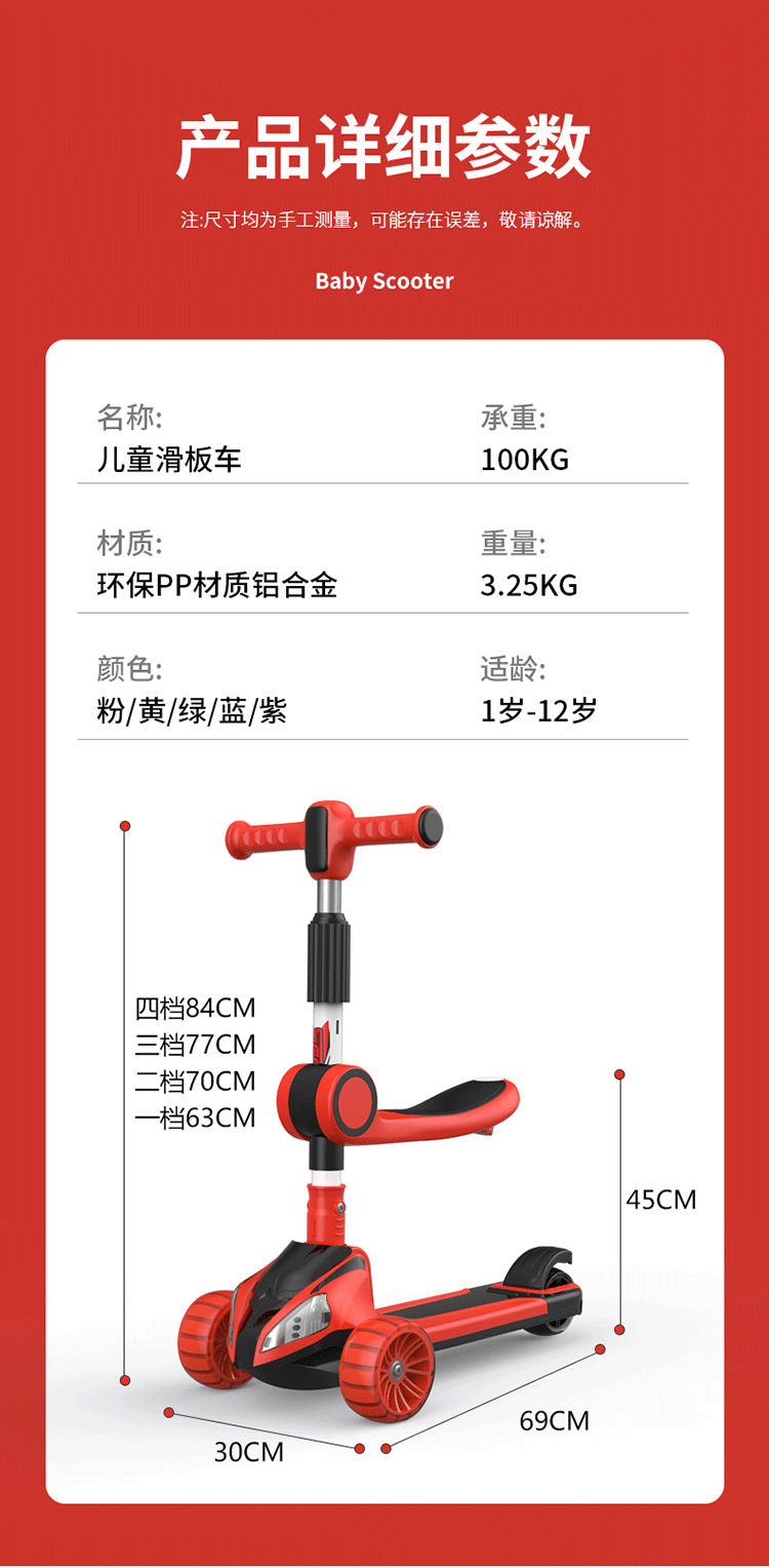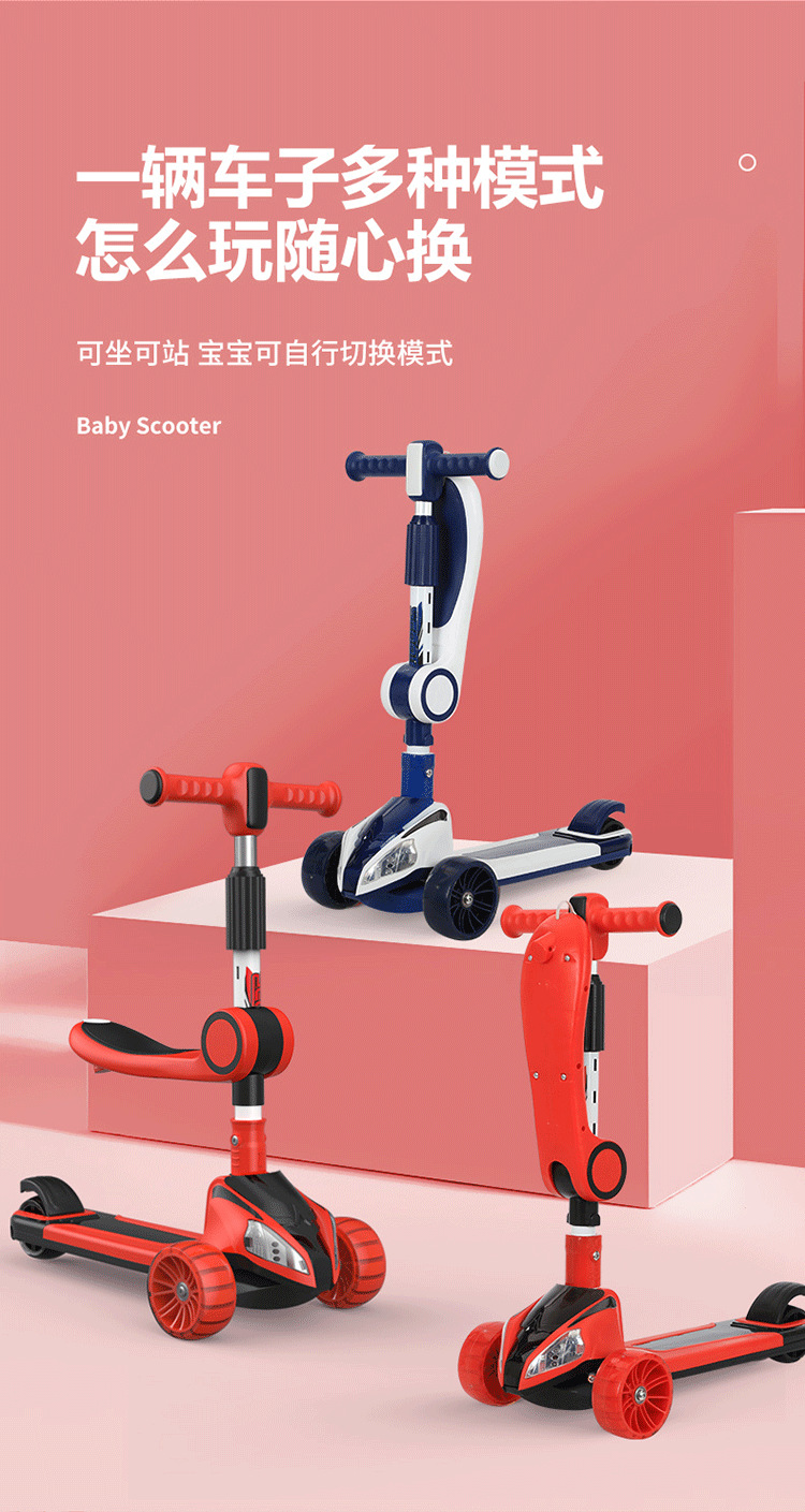 男女宝宝可坐可单脚滑行的儿童玩具车儿童滑板车遛遛车3-12岁