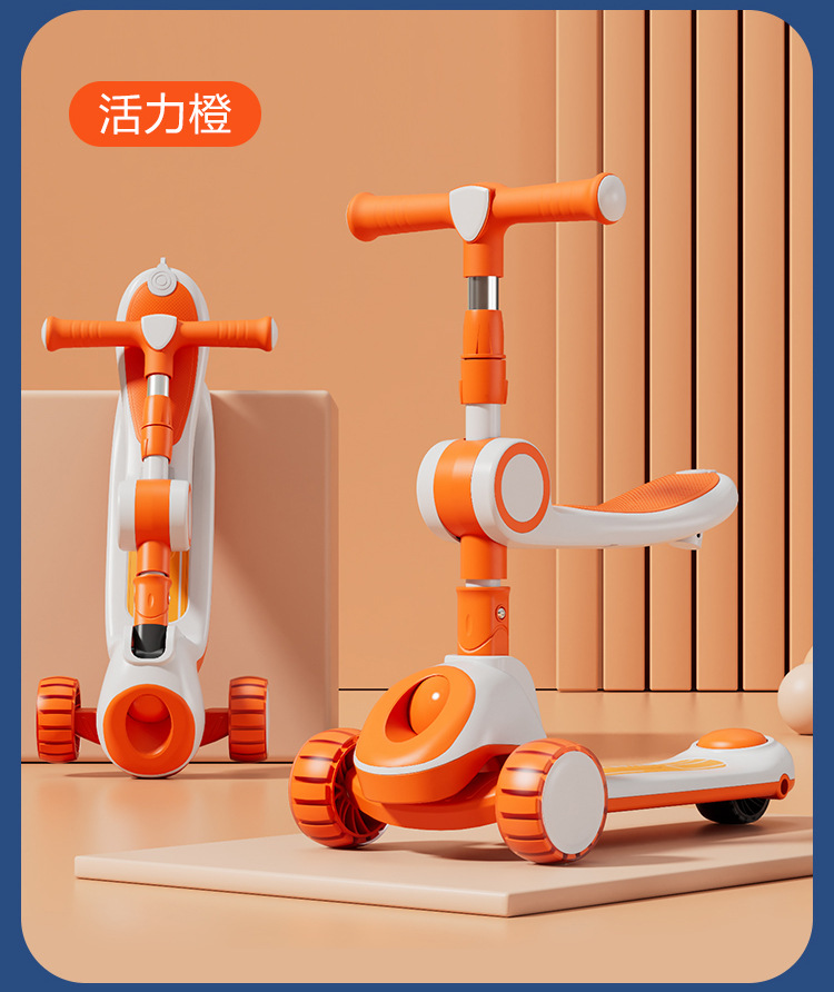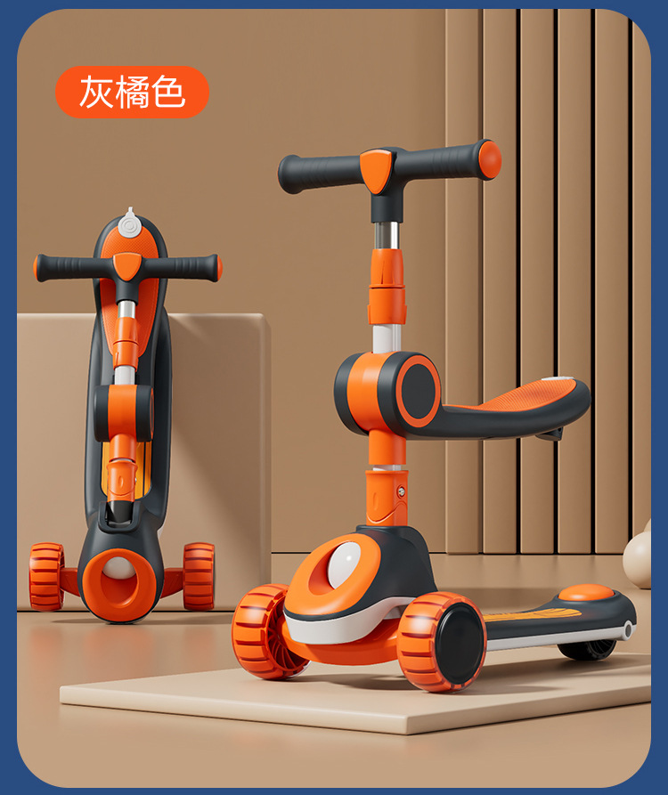 【活力橙/宝石蓝/靓丽黄/可爱粉/灰橘色】/车把带灯/闪光轮/音乐闪光踏板。 车座