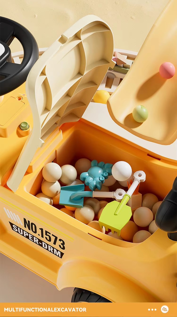 Children's scooter, four-wheel excavator, can ride for 1-3 years old, 2 babies, gift, construction truck, multi-function, wheelbarrow ¥53.00