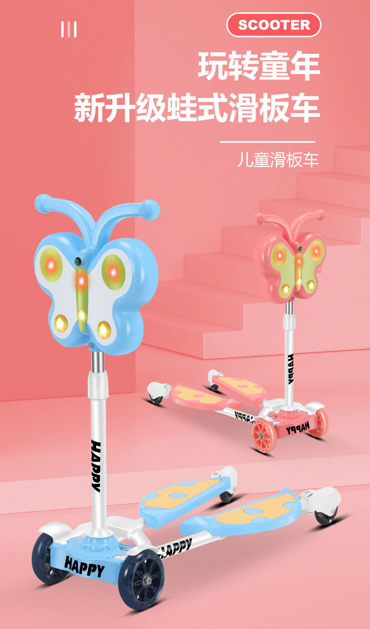 儿童滑板车蛙式2-6-12岁以上男女小孩四轮闪光宝宝双脚踏板剪刀车