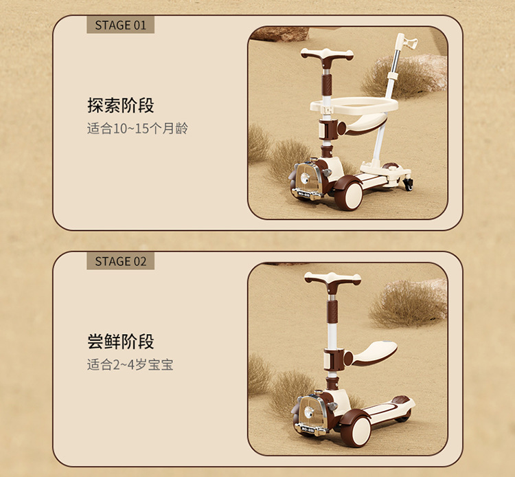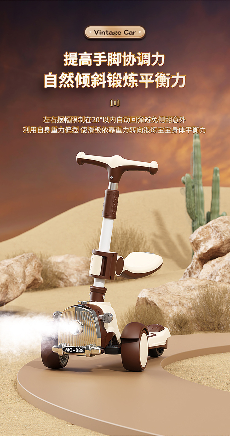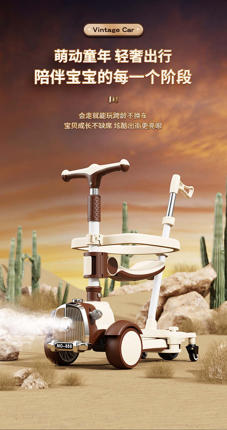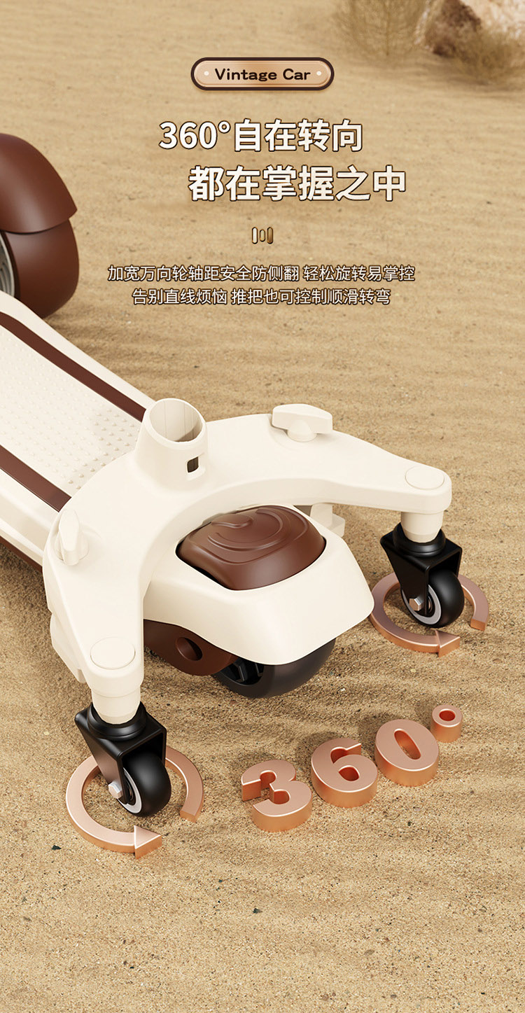 儿童滑板车带推把折叠宝宝滑行车1-3-7岁男女孩三合一玩具三轮车