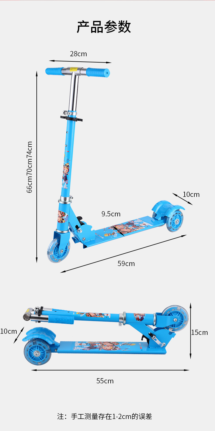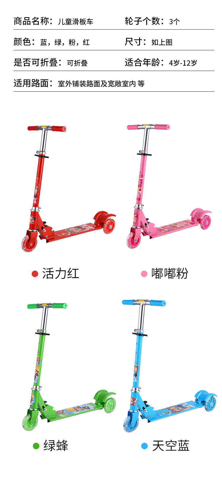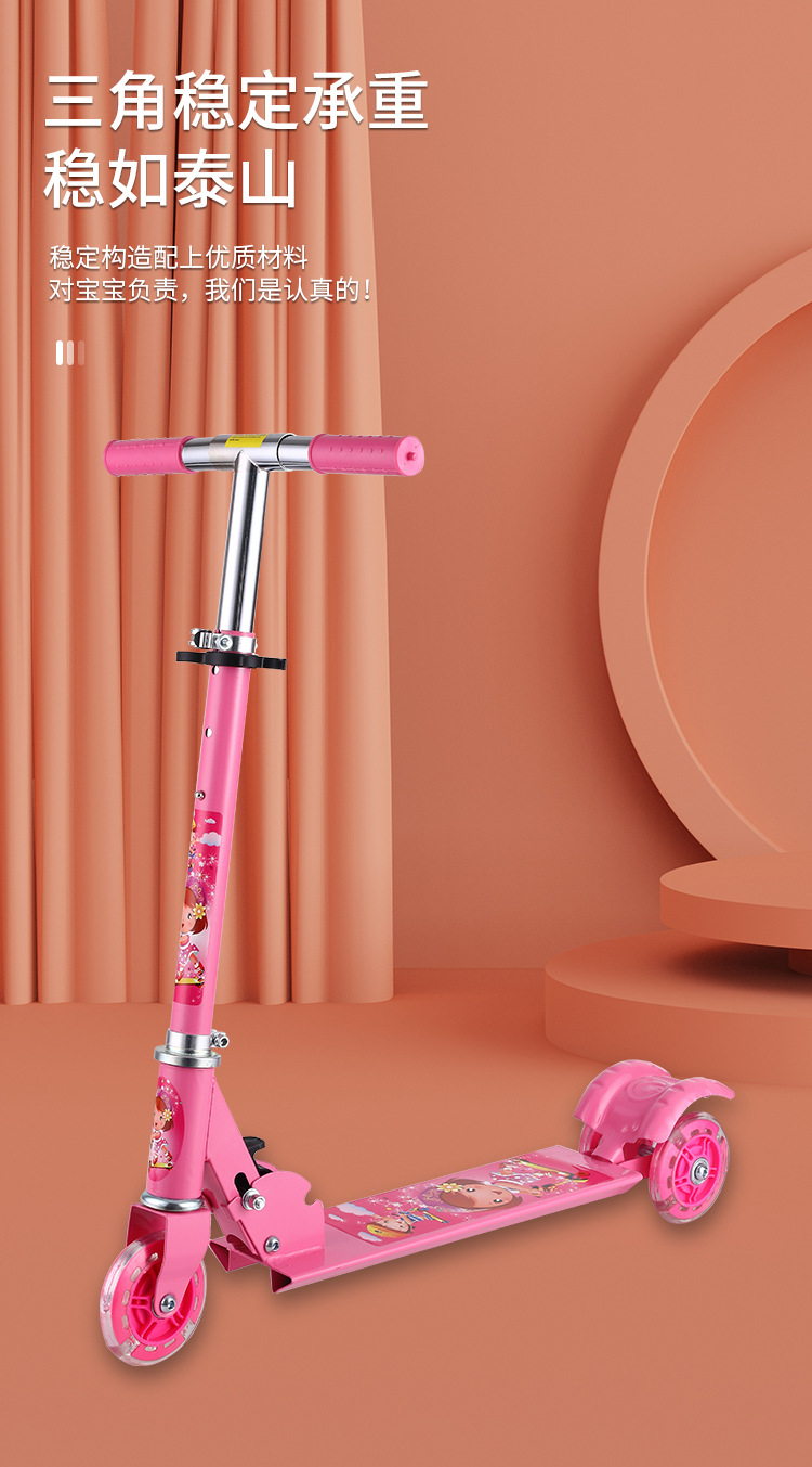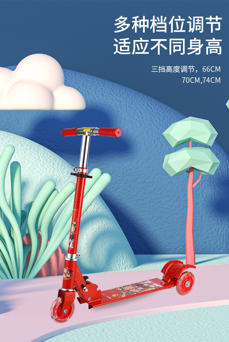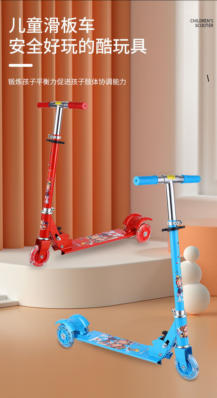 儿童滑板车脚踏车三轮闪光全铁滑滑车scooter可升降可折叠2轮车