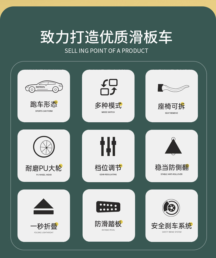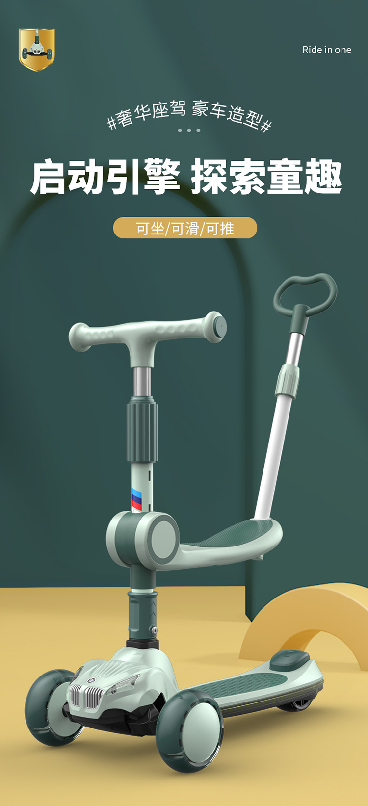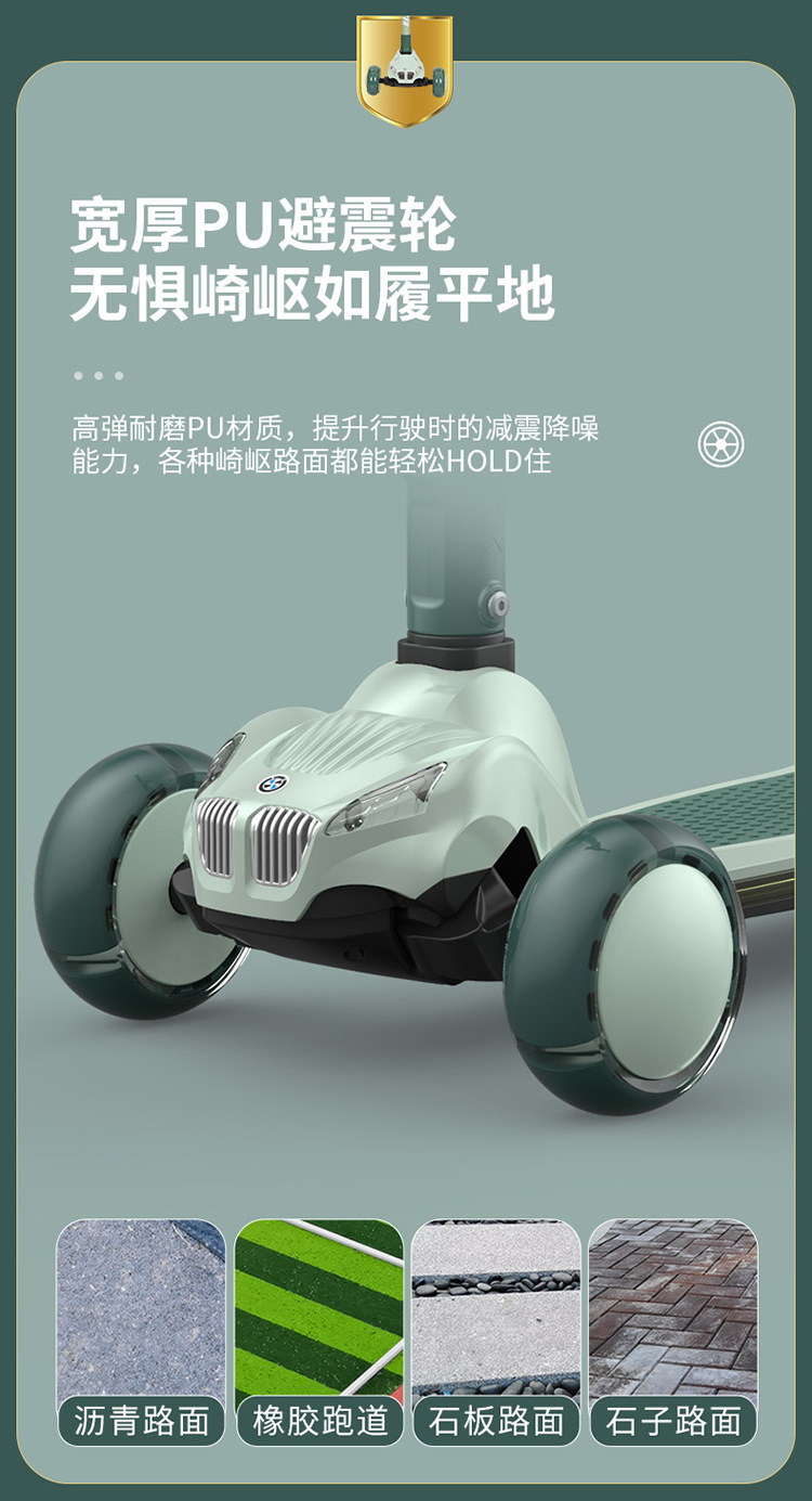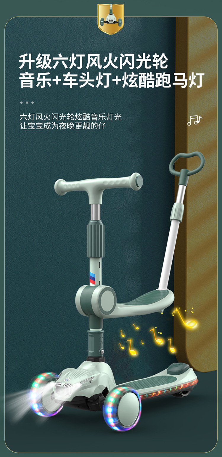 儿童滑板车发光音乐悍马宽轮带灯带座椅免安装3—6—8岁新款