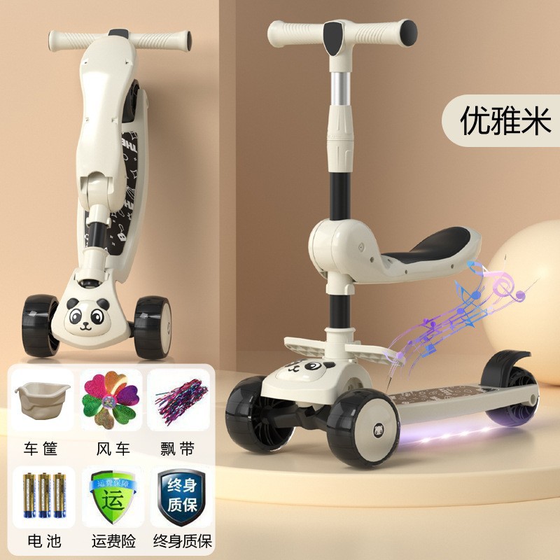宝宝滑板车幻影二合一儿童滑行车男女童溜溜车可骑折叠音乐灯光