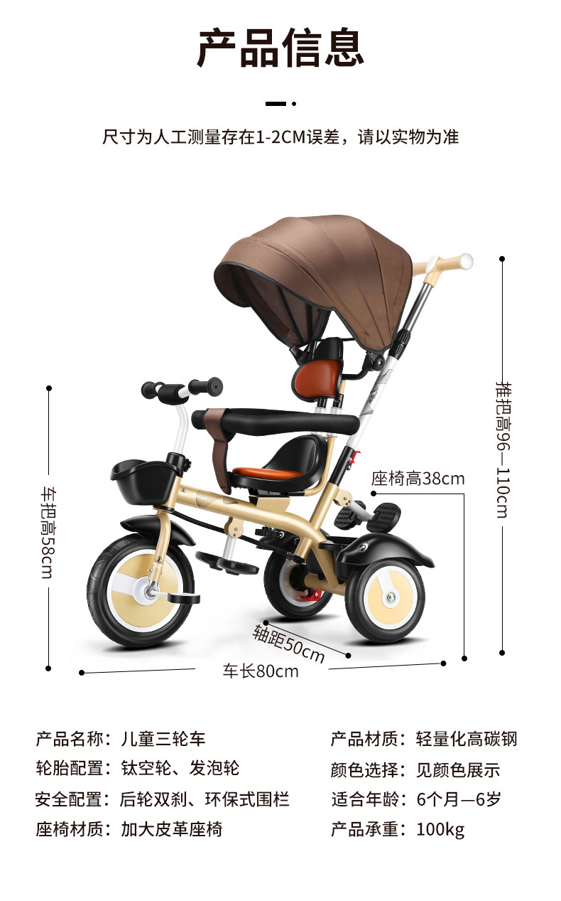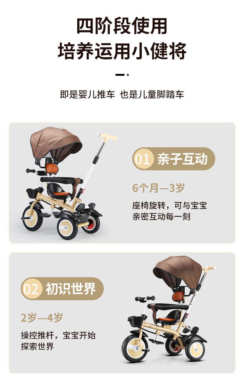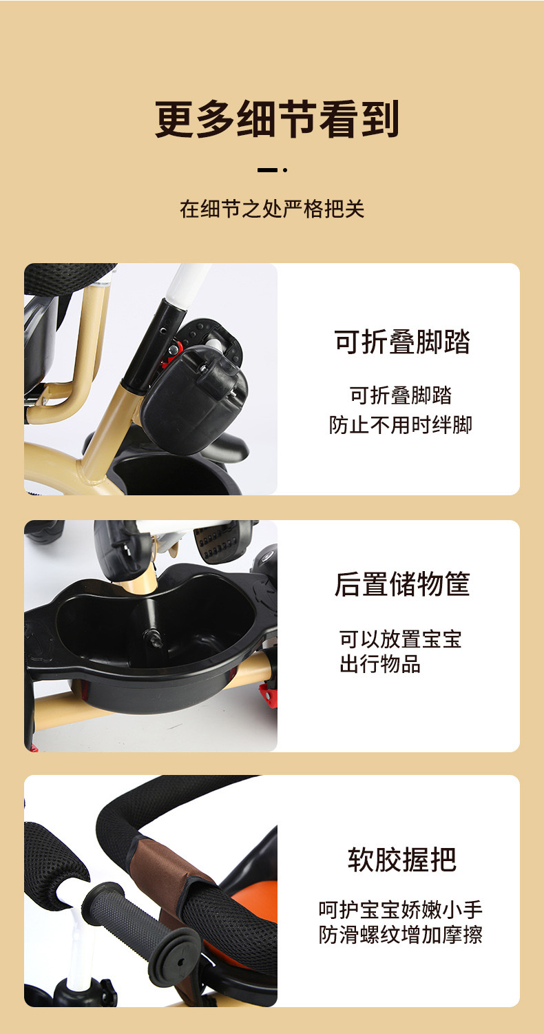 儿童三轮脚踏车1-3-5轻便宝宝自行车小孩子2-6岁大号手推车