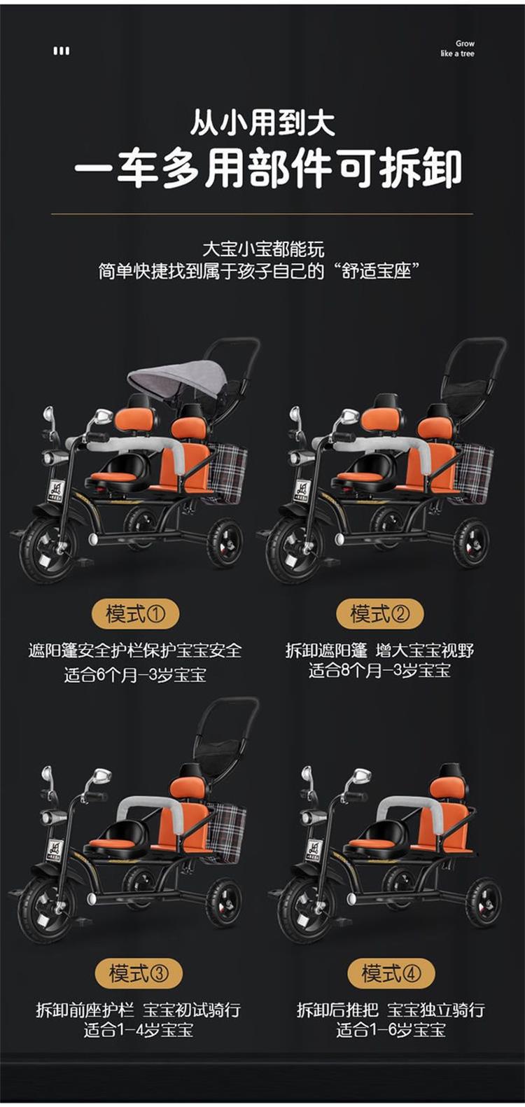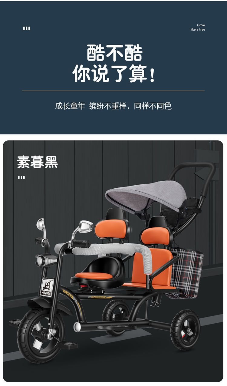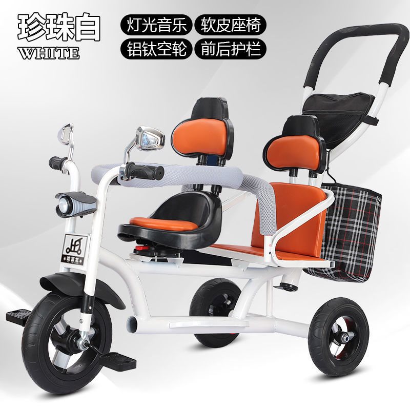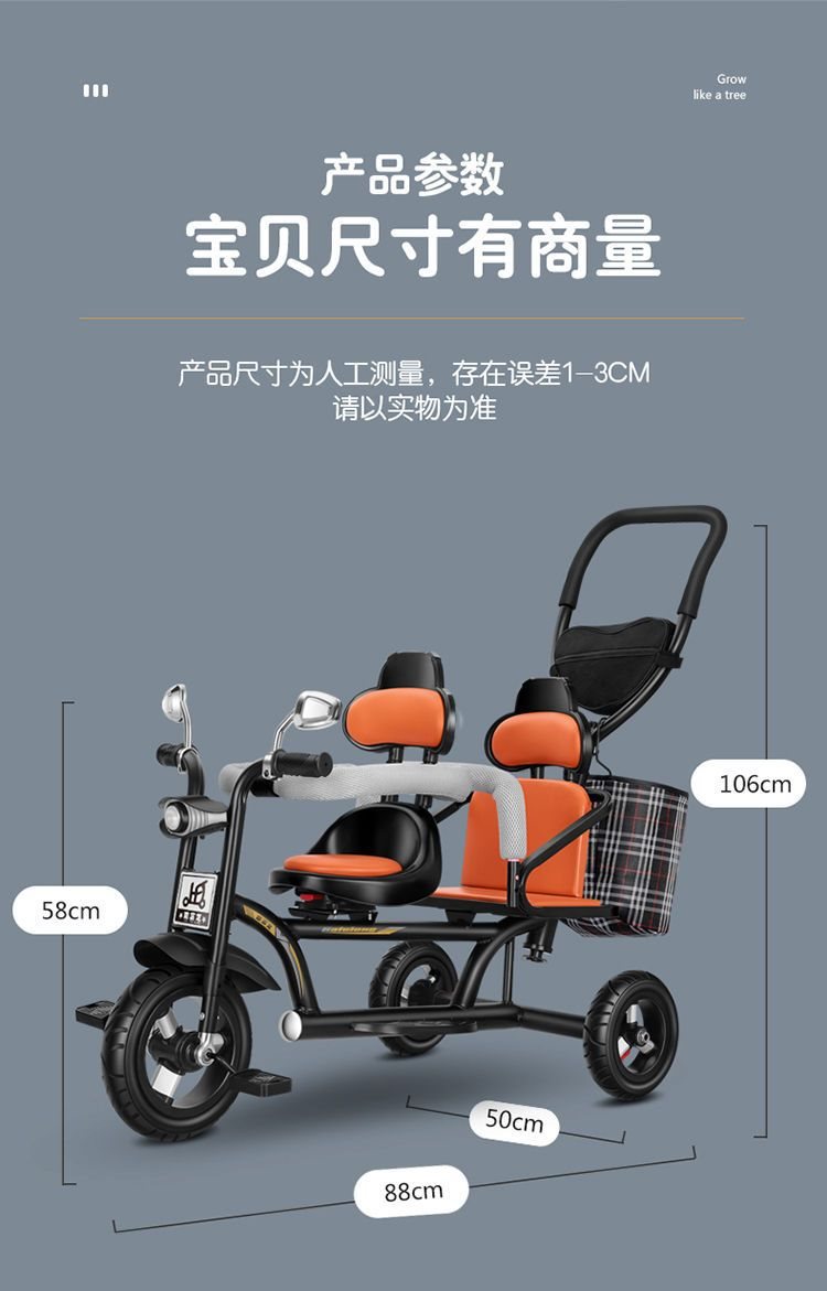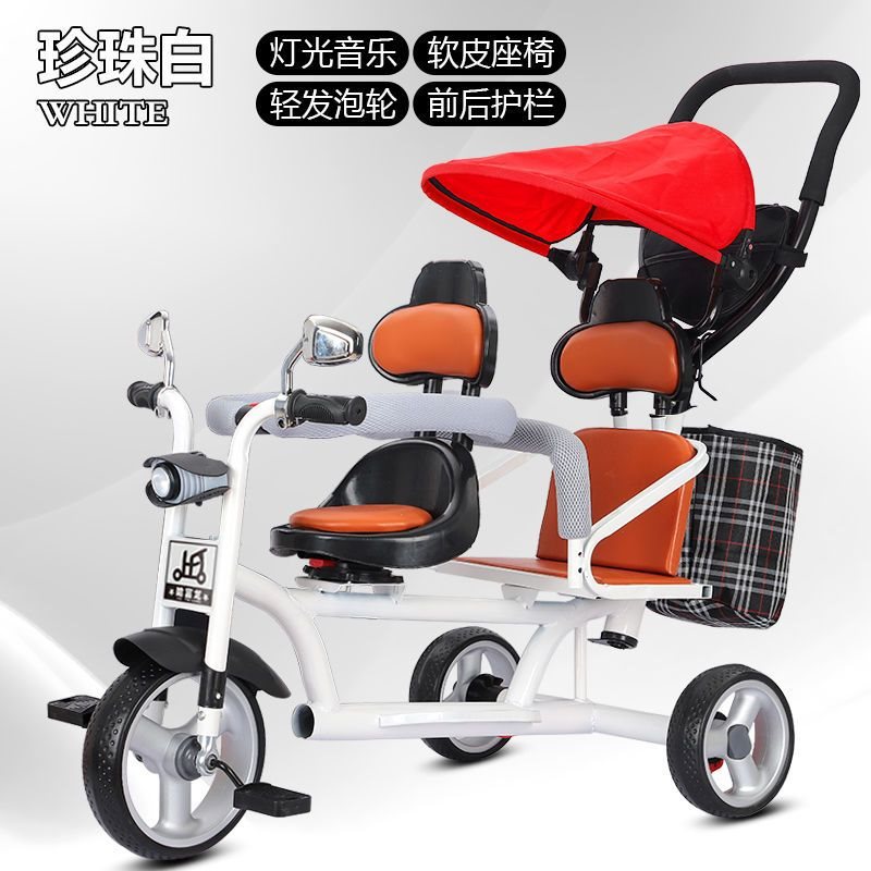儿童三轮车双人宝宝脚踏车双胞胎手推车婴儿轻便童车大号1-2-3岁