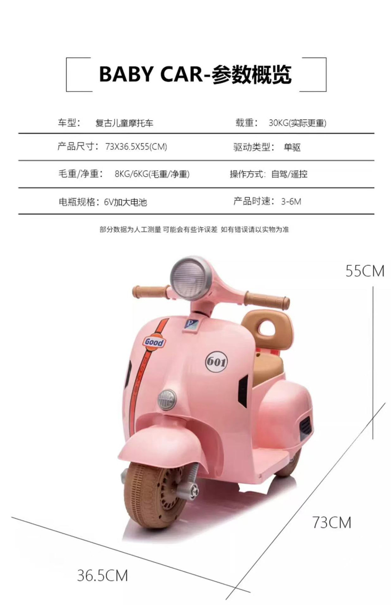 单电单驱款【6V4.5(天一))/6v4(龙威)电瓶1个】/+【6V380电机(马达)】+【一键启动】+【早教功能】+【LED大灯】+【颜色:白,粉,蓝,绿,】