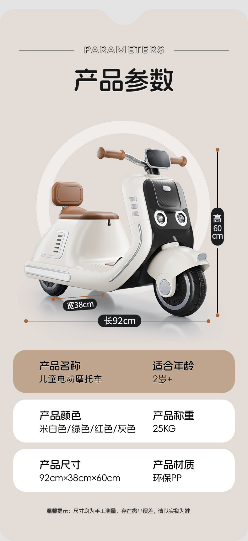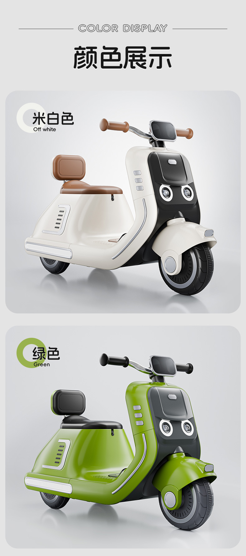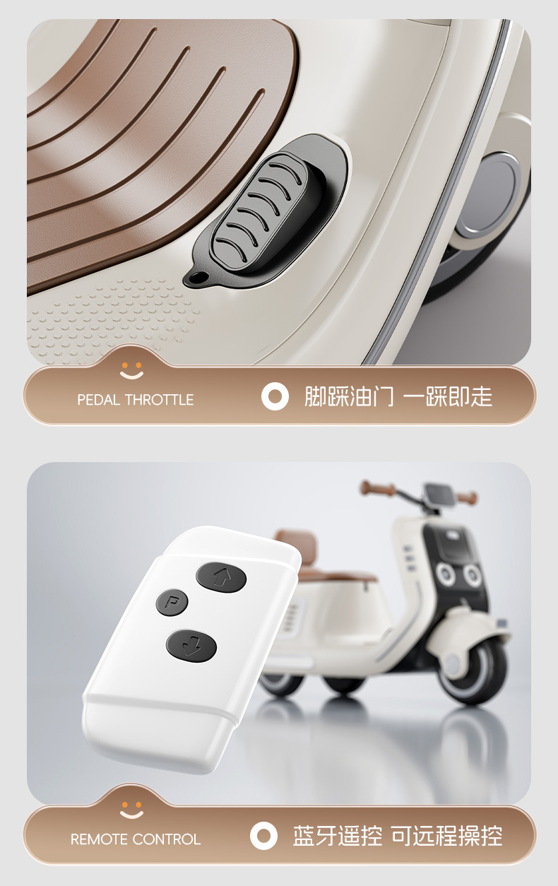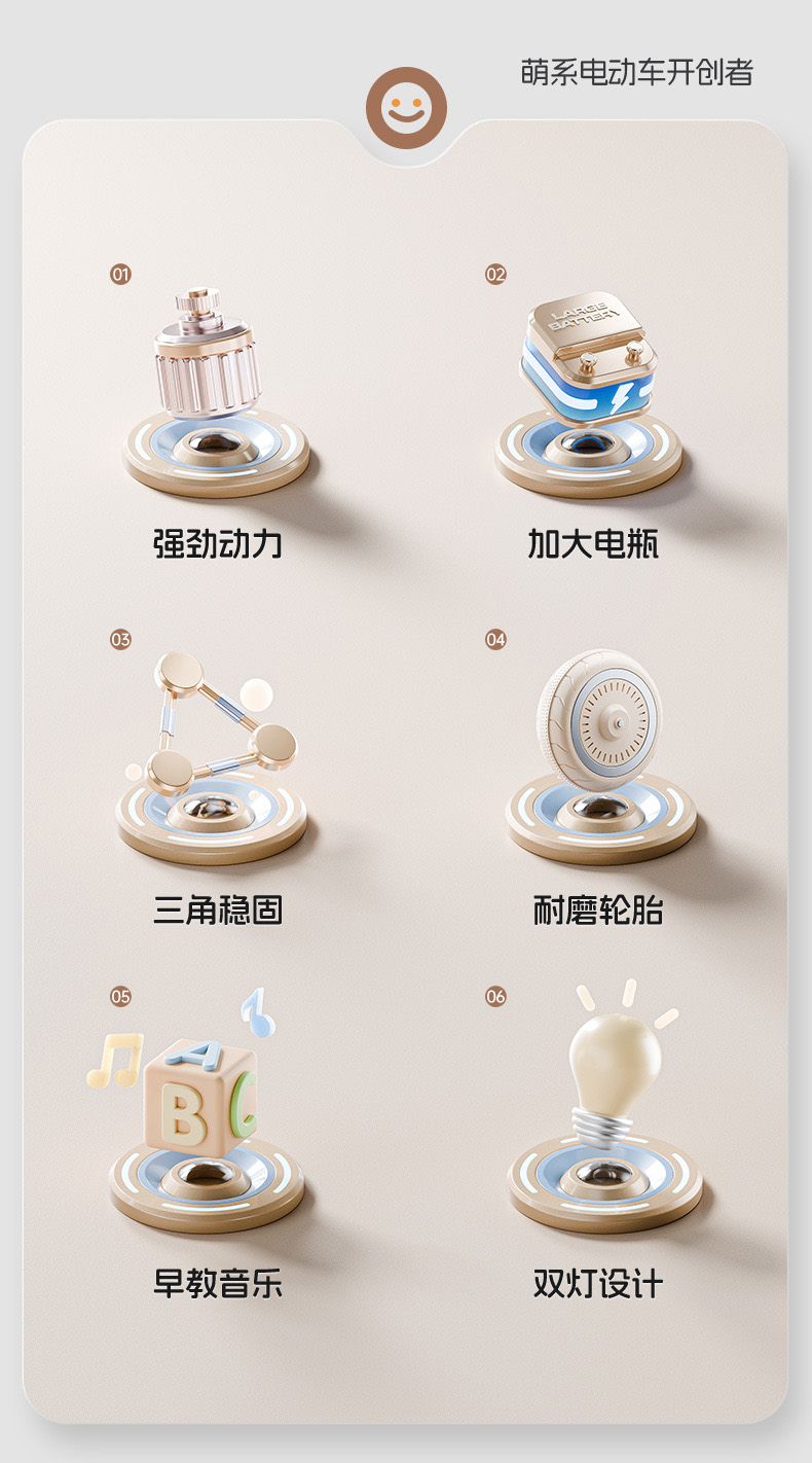 货号:024-TCZD 注册会员可查看: 体积.重量等参数,并可自动生成订单合同,自动汇总数据,选配功能! 单电6v7000毫安电瓶 6V1000ma充电器 双驱380电机 LED灯光/车身灯板效果早教 音乐故事环保原料 音量加减USBMP3早教系统 蓝牙功能,轴距加宽 加固底盘 三角设计
