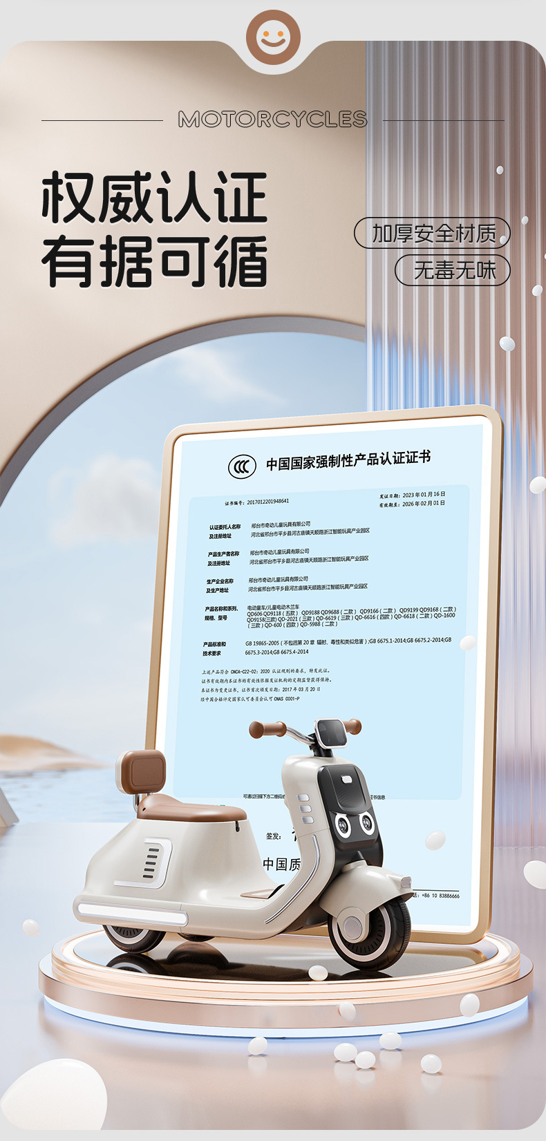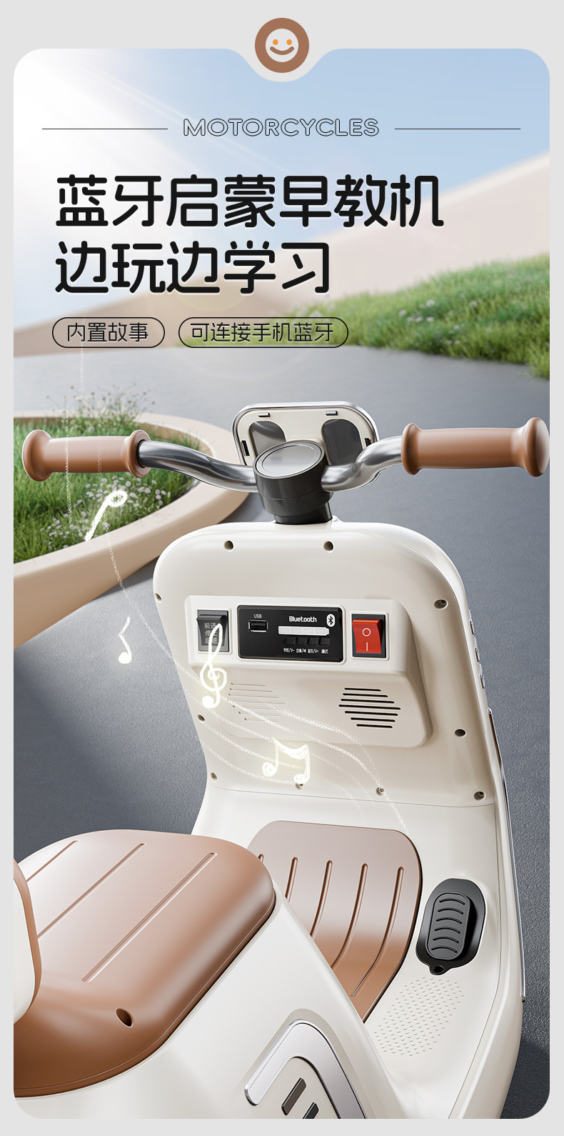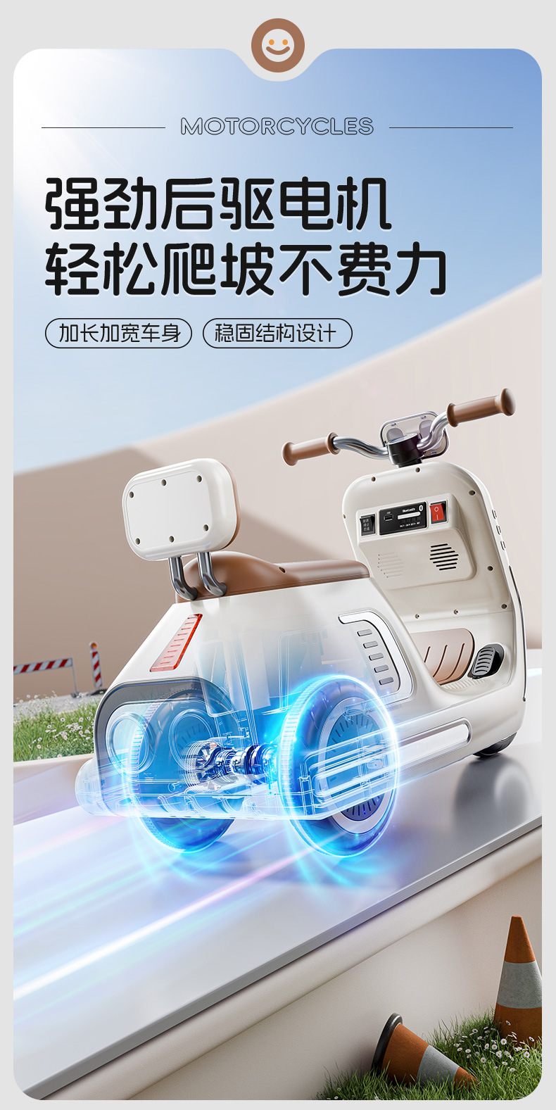 货号:024-TCZD 注册会员可查看: 体积.重量等参数,并可自动生成订单合同,自动汇总数据,选配功能! 单电6v7000毫安电瓶 6V1000ma充电器 双驱380电机 LED灯光/车身灯板效果早教 音乐故事环保原料 音量加减USBMP3早教系统 蓝牙功能,轴距加宽 加固底盘 三角设计