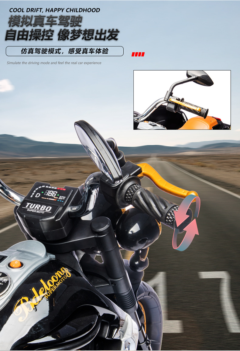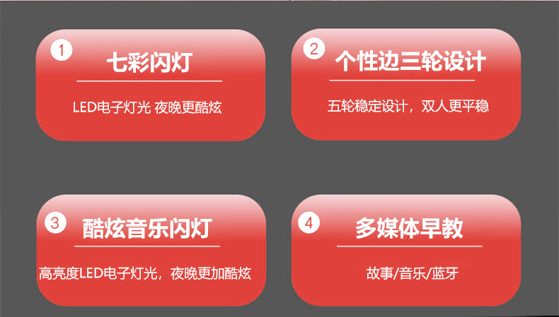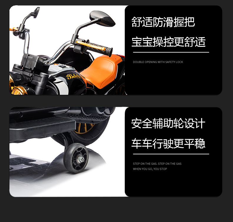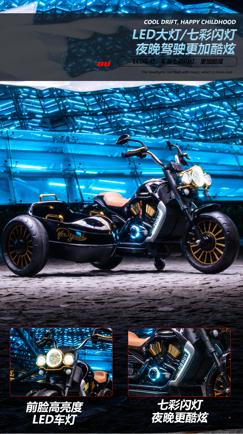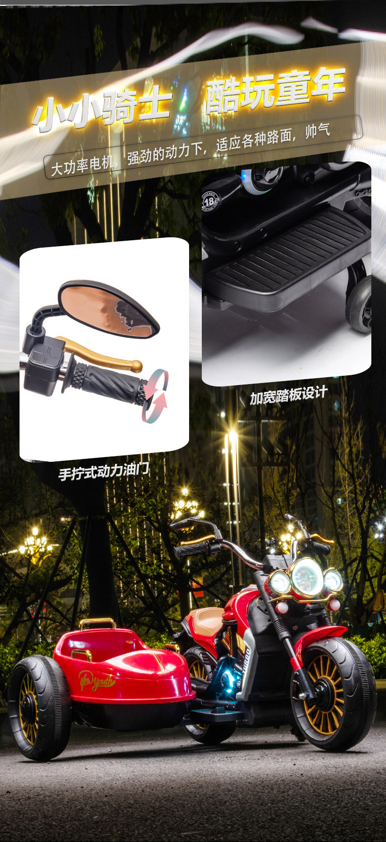 货号:09-TCZD 注册会员可查看: 体积.重量等参数,并可自动生成订单合同,自动汇总数据,选配功能! 电瓶12V7AH,马达#550,灯光,音乐,一键启动,MP3播放器(MP3/USB插口/蓝牙/音量调节/早教/故事),电量显示,脚踩油门,带侧座位,皮座