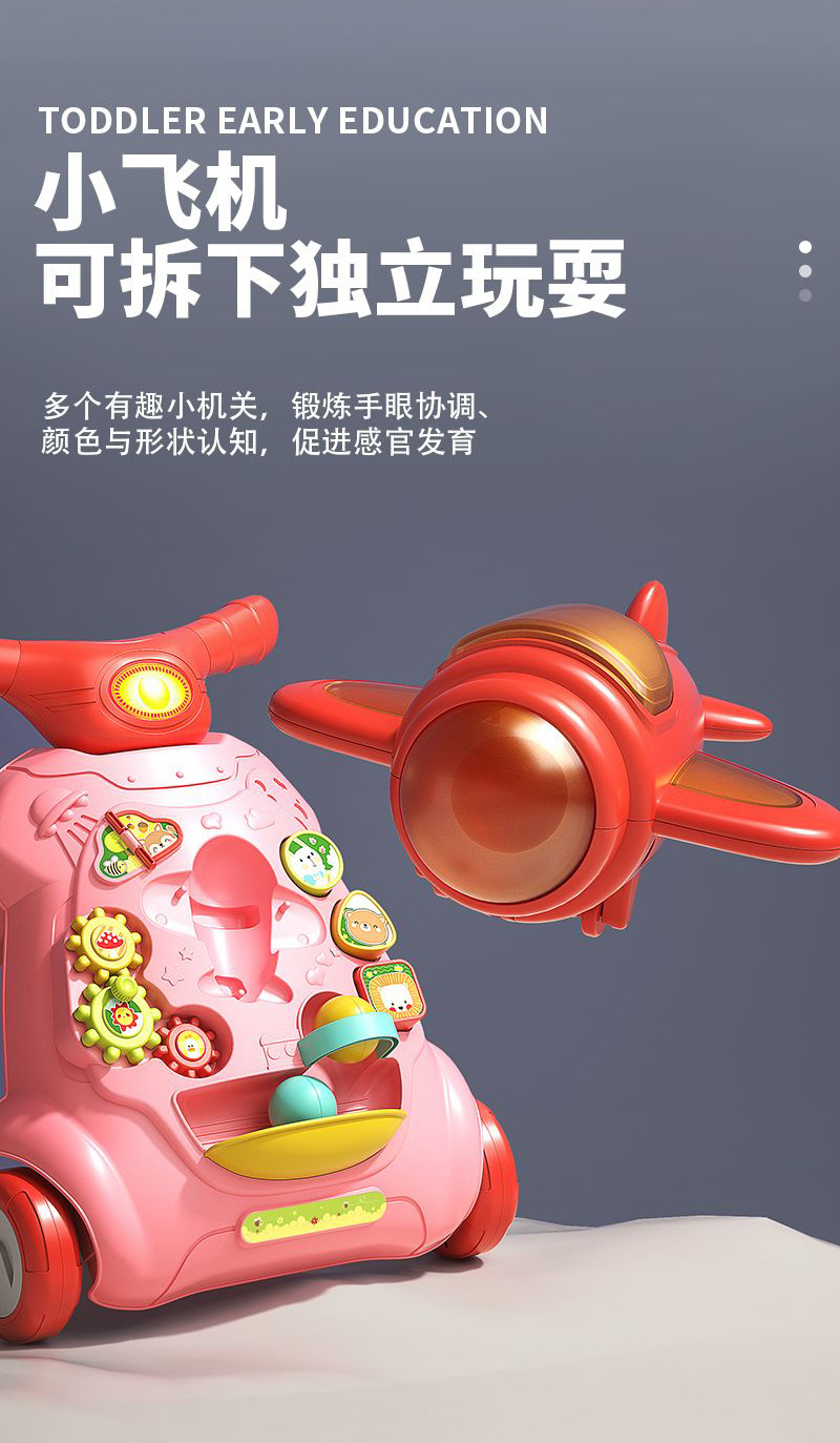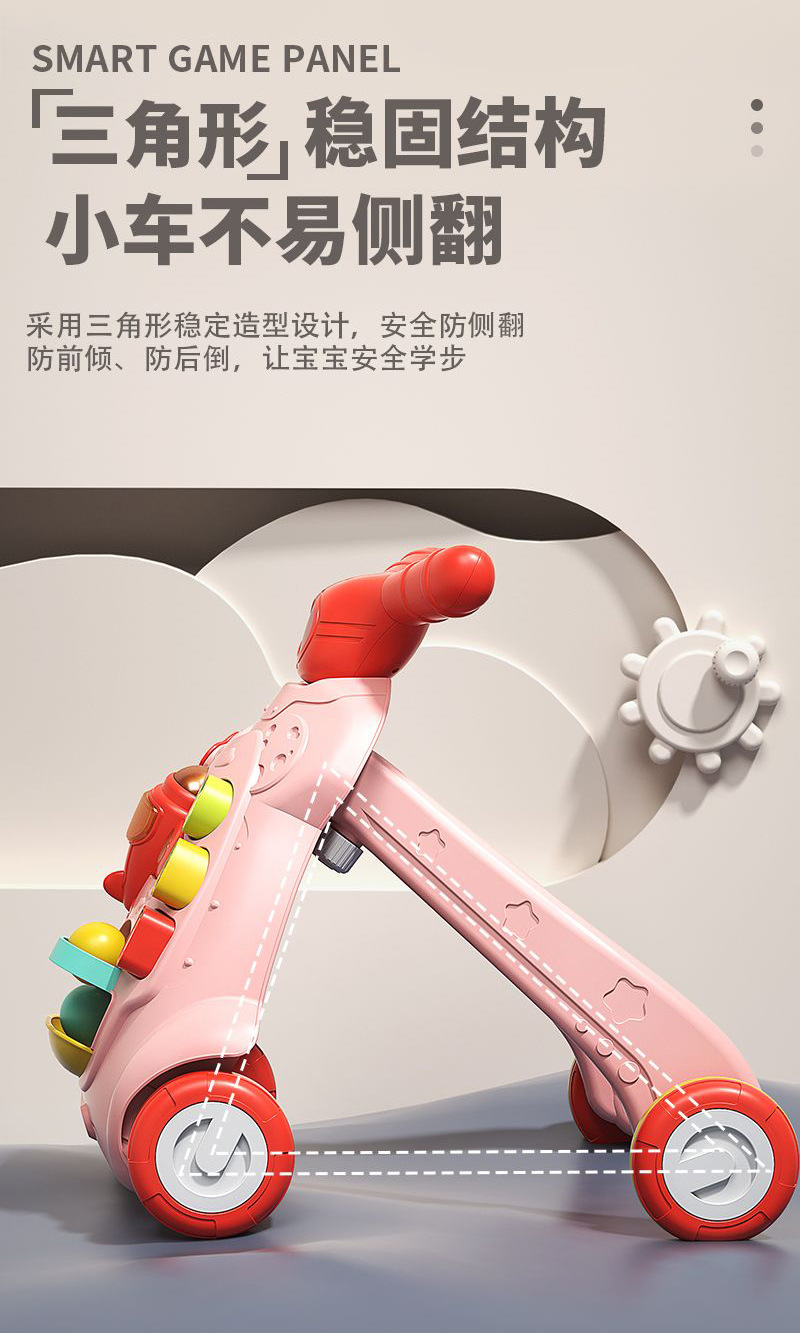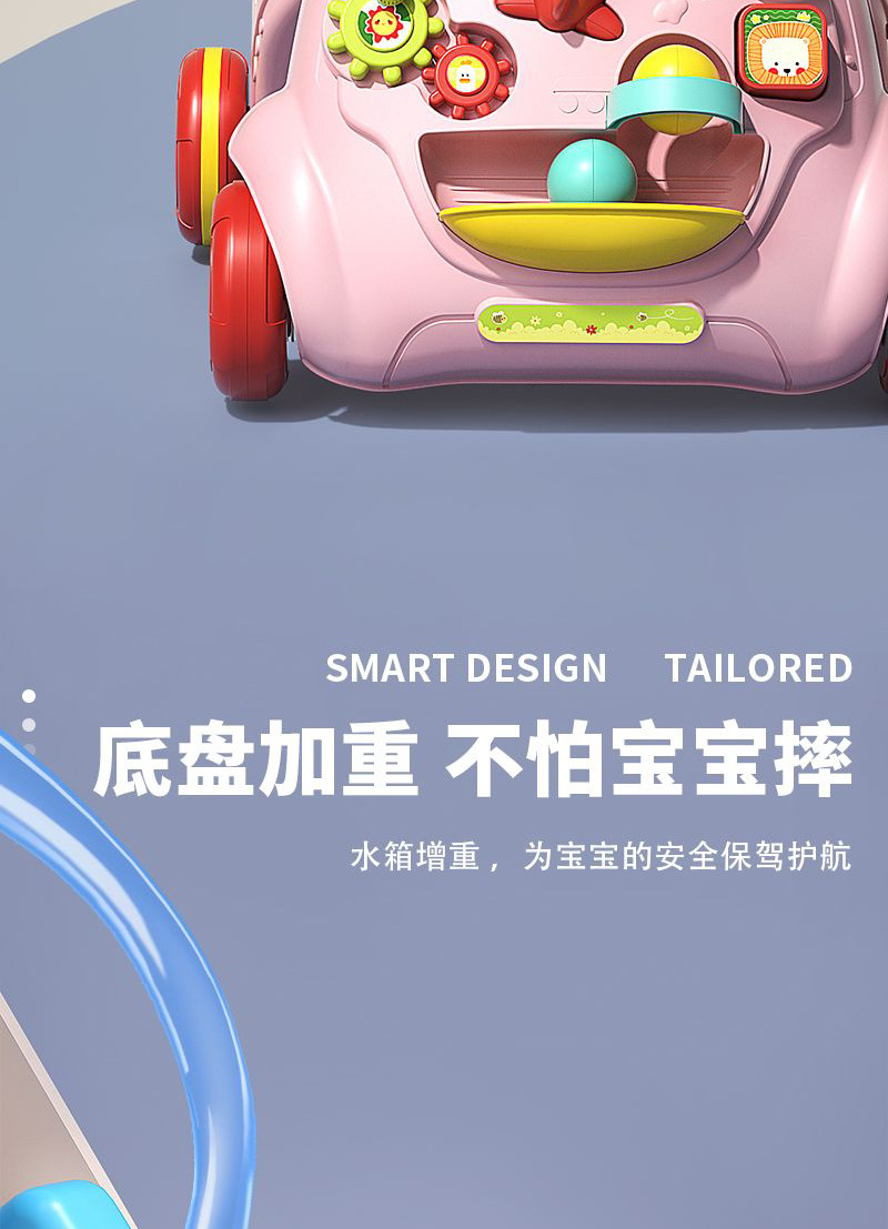 新款学步车多种功能音乐灯光手推车 防侧翻带增重水箱 可调速助步车