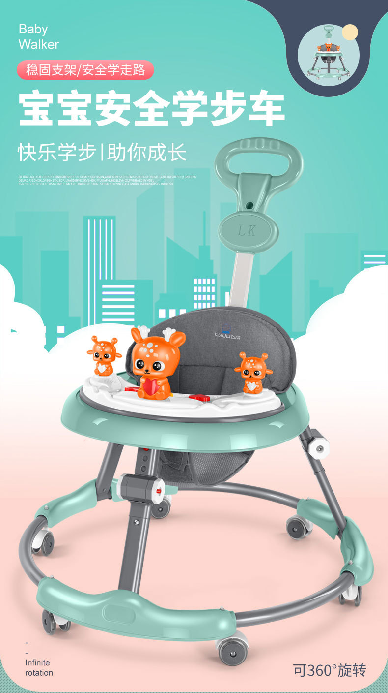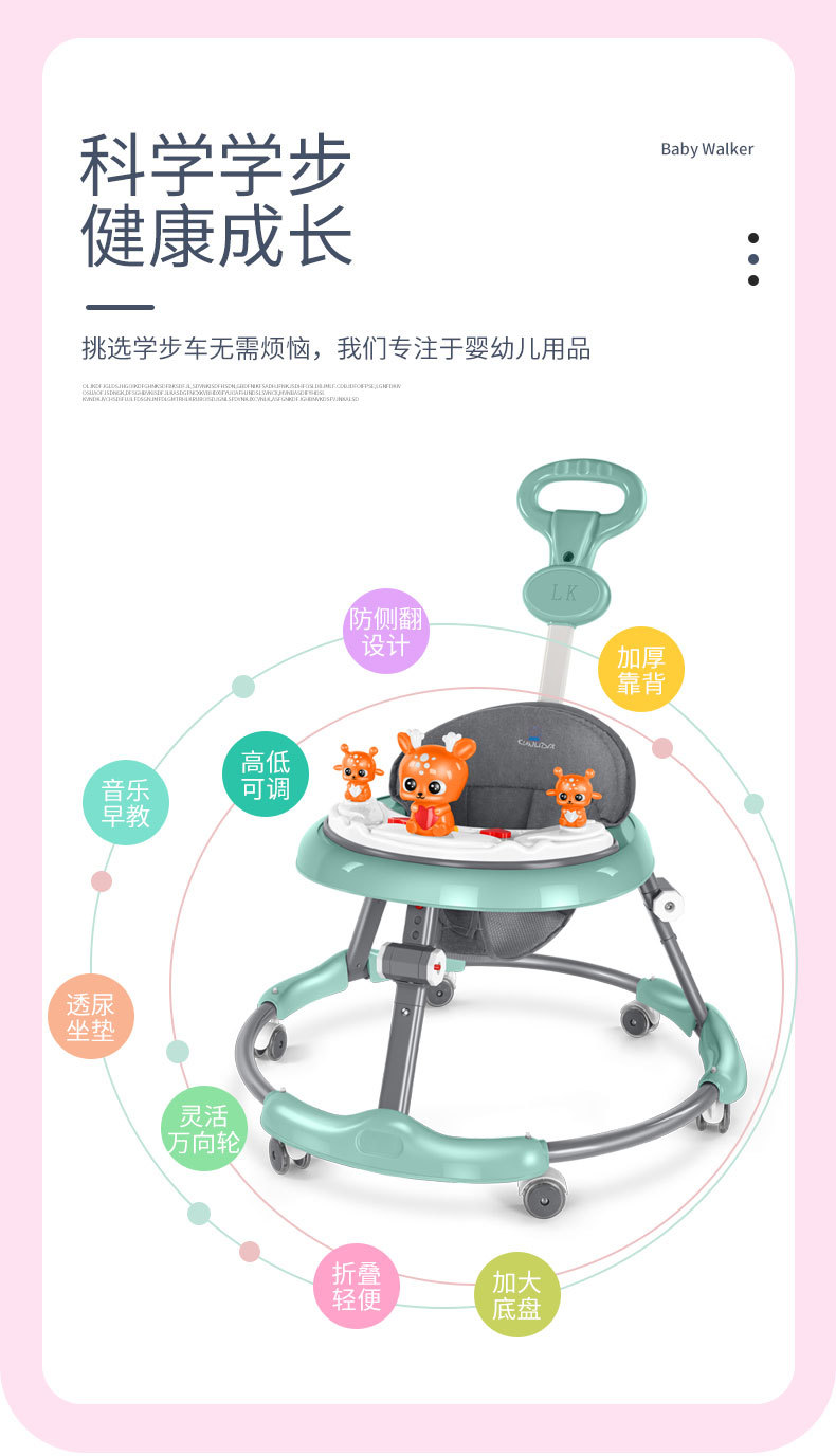 婴儿童学步车7档调节防侧翻防O型腿6-18个月宝宝助步车推车