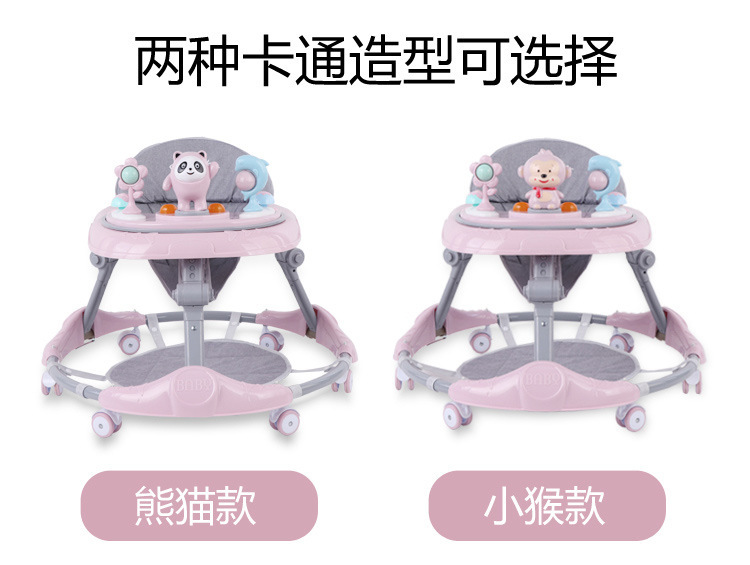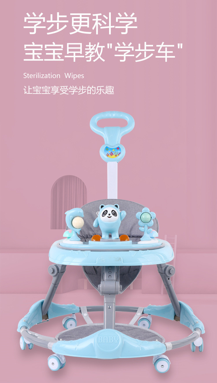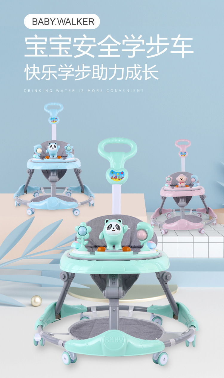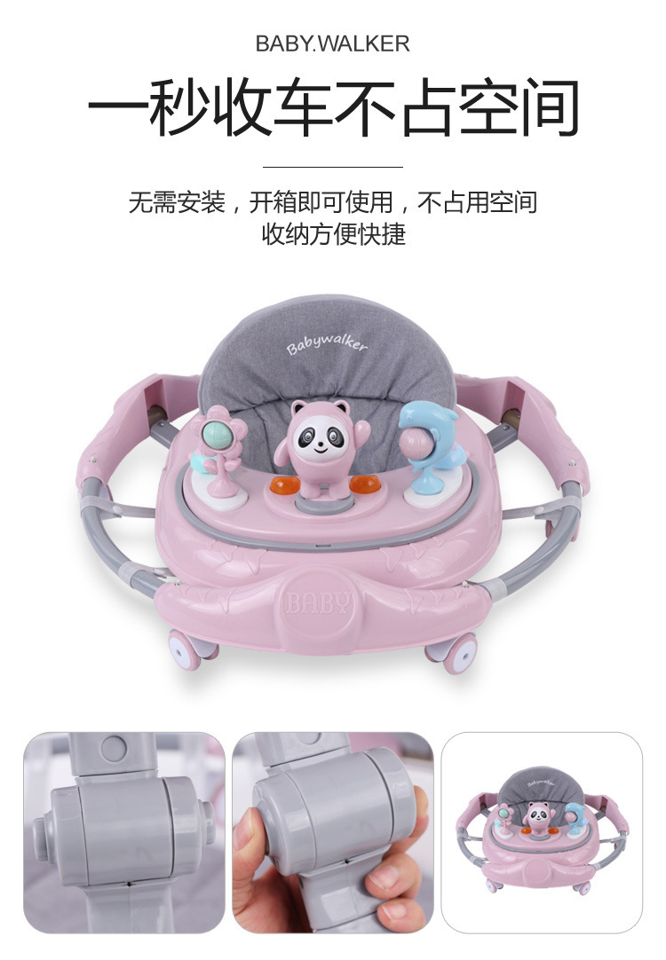 婴儿学步车6/7-18个月宝宝防侧翻带音乐带玩具水晶轮静音助步车