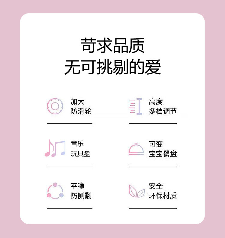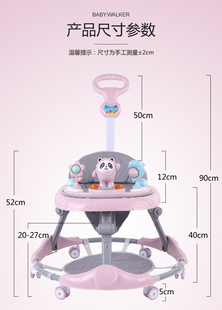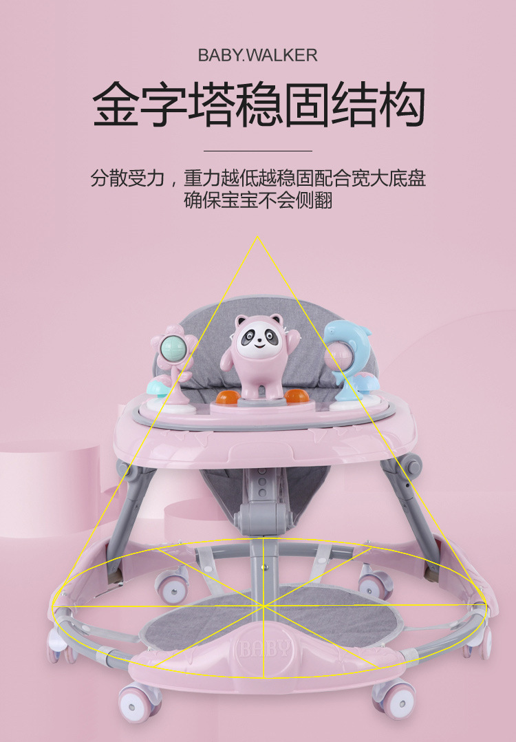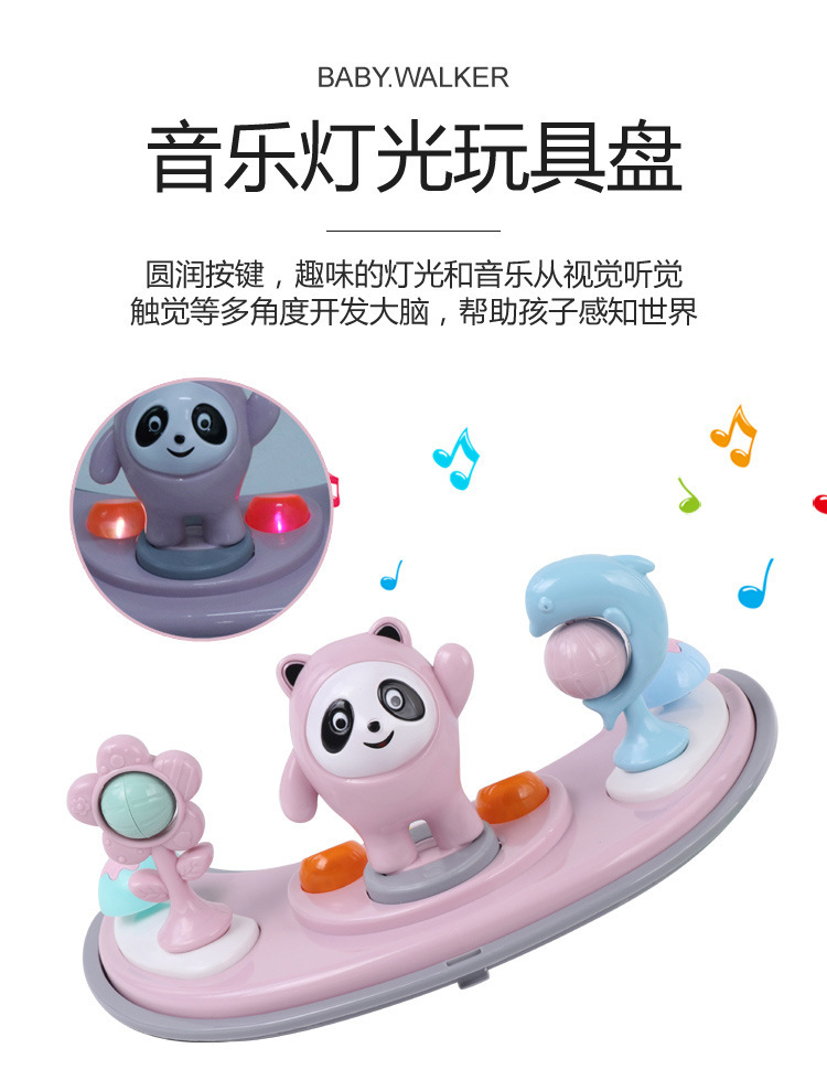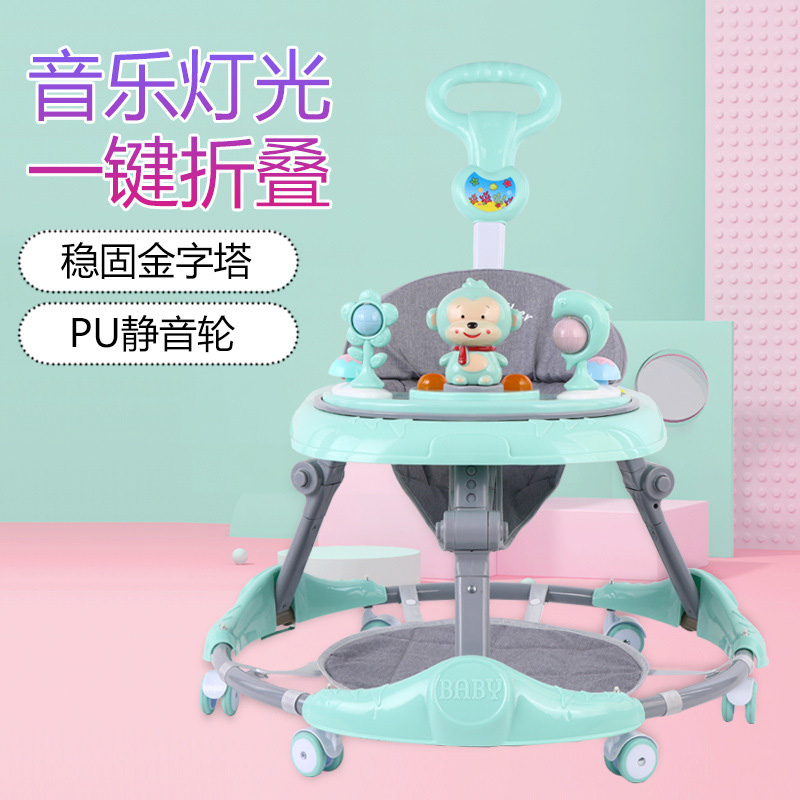 婴儿学步车6/7-18个月宝宝防侧翻带音乐带玩具水晶轮静音助步车