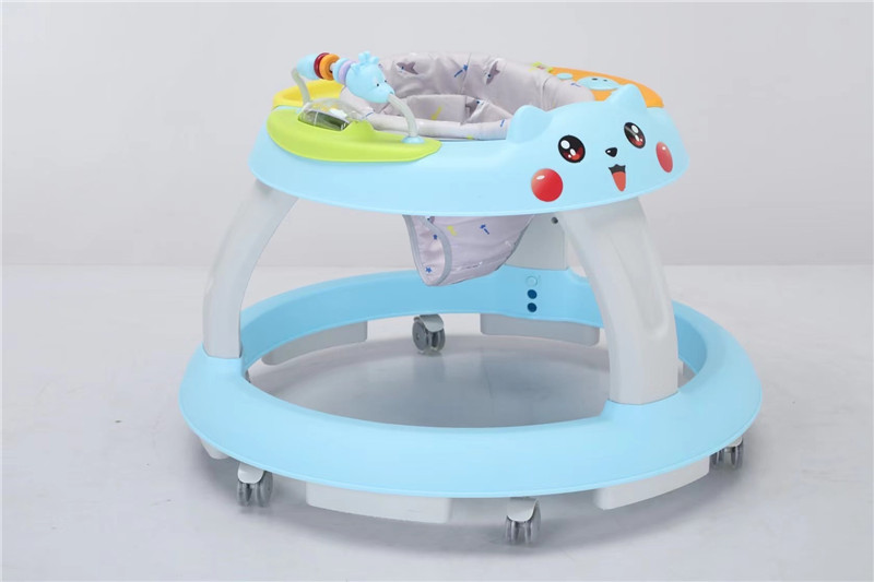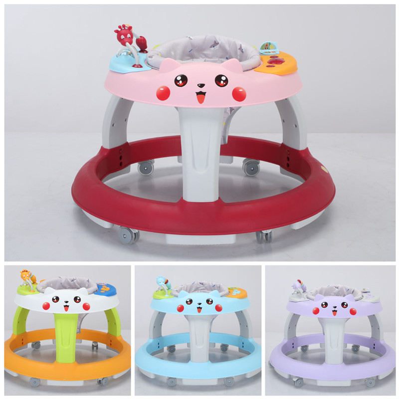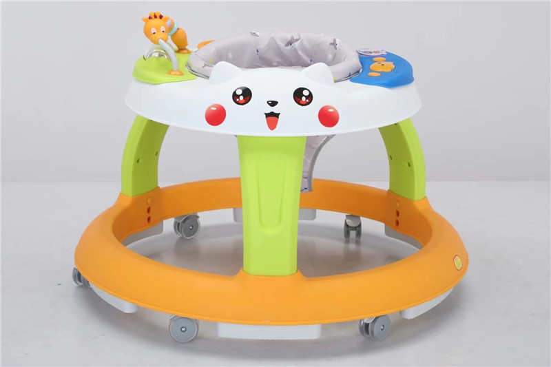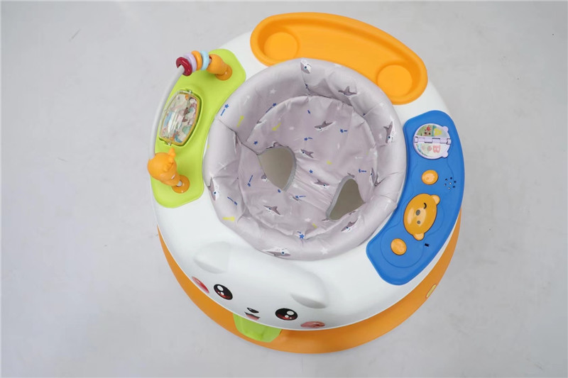 材质:塑料适用年龄:6-12个月,1-3岁,0-6个月功能:有音乐1.静音轮2.坐垫360⁰旋转3.下盘防跌落4.三挡调节5.带音乐