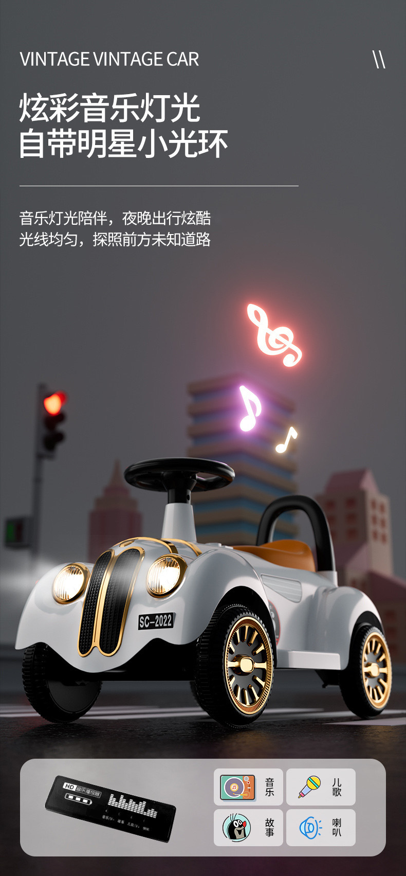 新款儿童电动老爷车新奇发光炫酷智能玩具童车带音乐